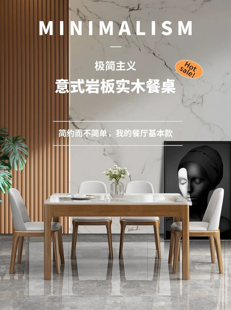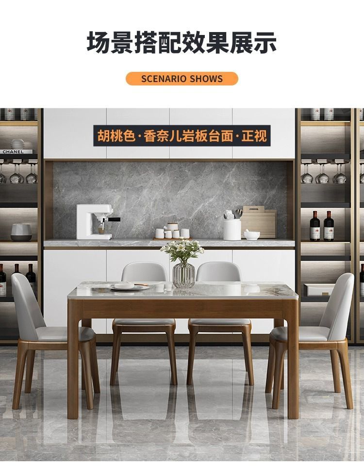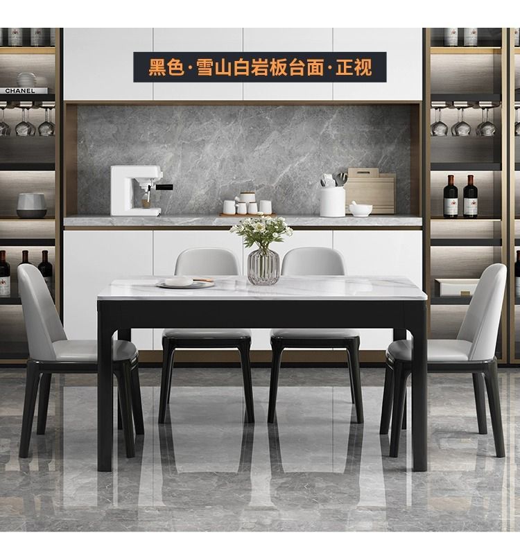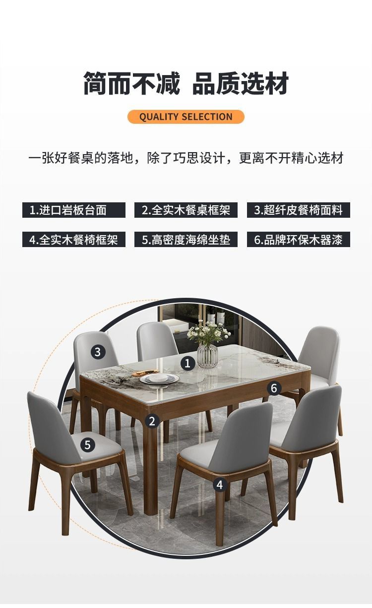 意式岩板餐桌椅组合现代餐桌家用全实木小户型轻奢长方形西餐桌子