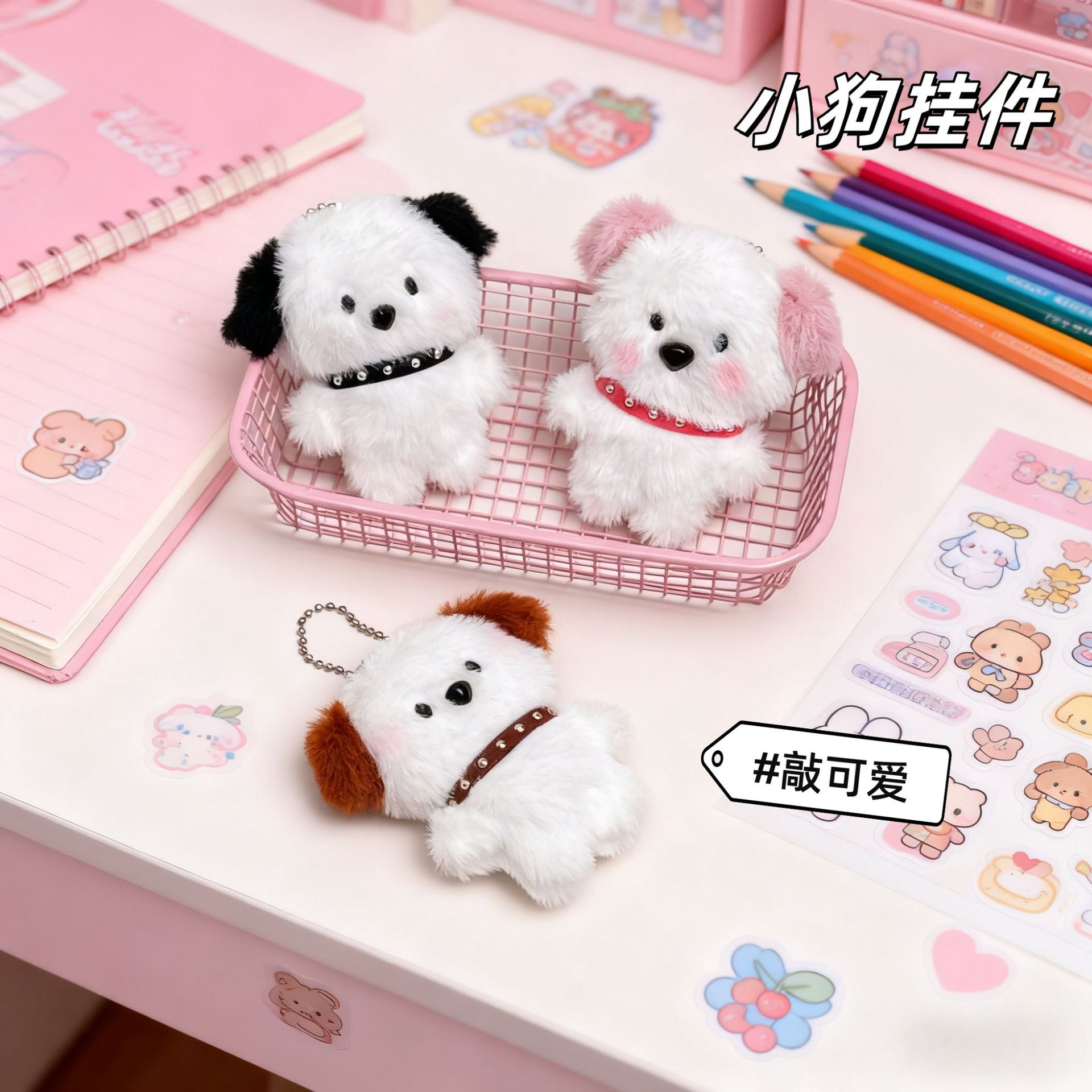 新款毛绒可爱项圈小狗玩偶挂件少女心奶呼呼狗狗背包装饰摆摊批发