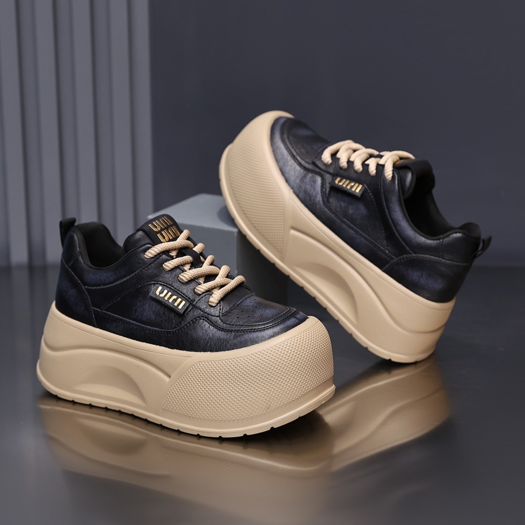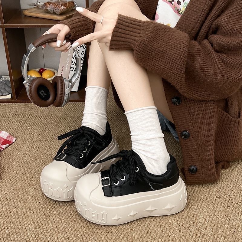 6CM厚底大头休闲鞋子女2025年秋季新款小个子增高松糕板鞋面包鞋