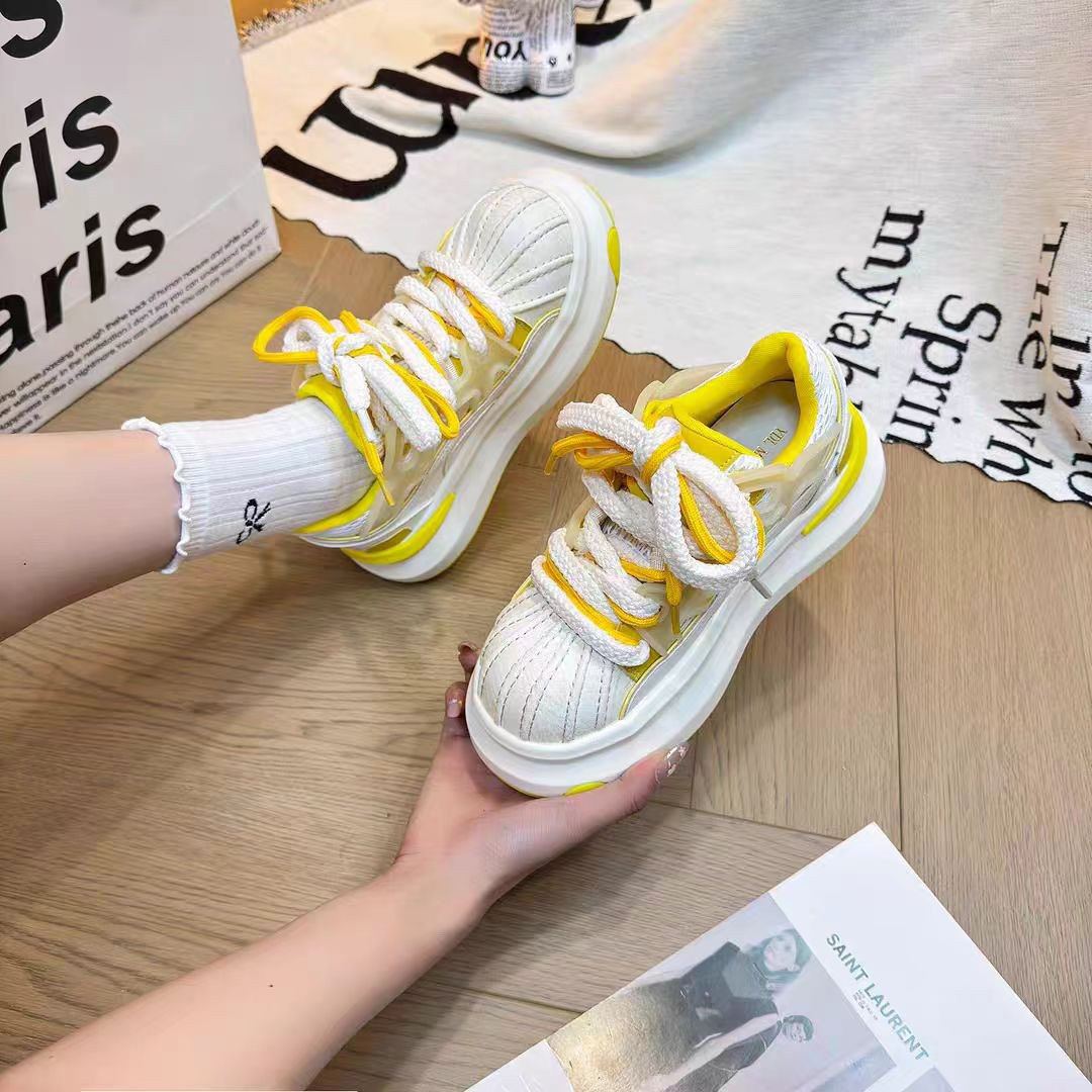 小柄な方向けの白い靴、身長を伸ばすカジュアルシューズ、トレンドの2025年新作ヨーロッパファッション、女性用の大きなつま先のプラットフォームシューズ、厚底パンシューズ