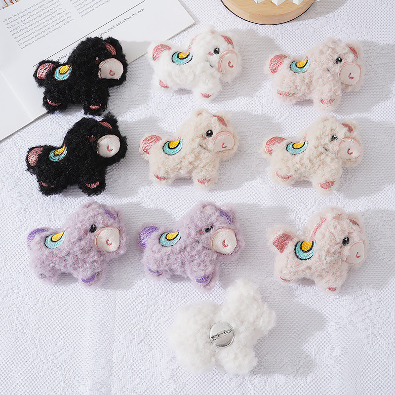 毛绒小马胸针卡通小怪兽可爱日系装饰包包挂件diy小饰品配件批发