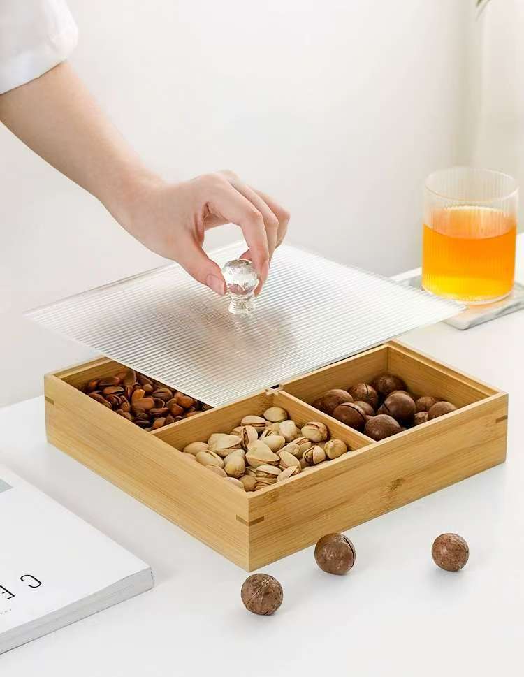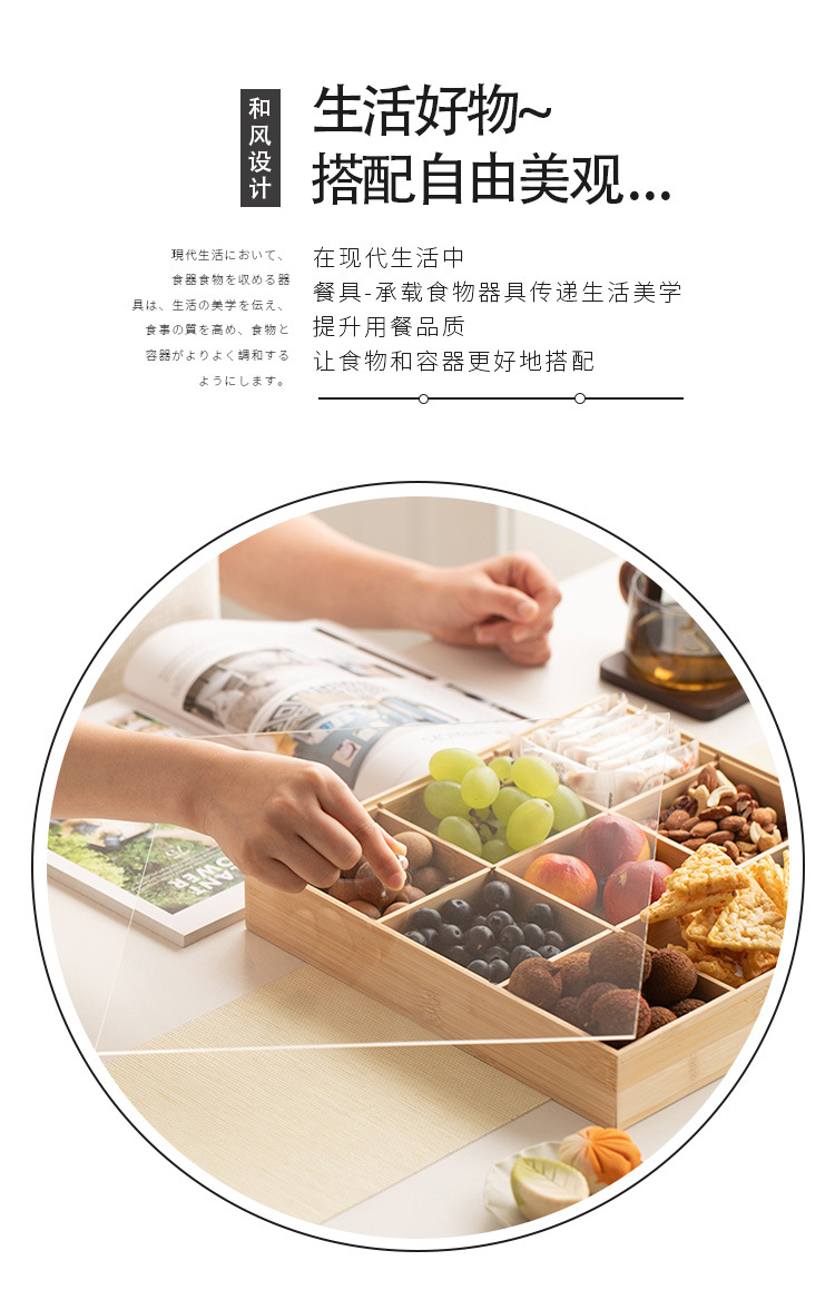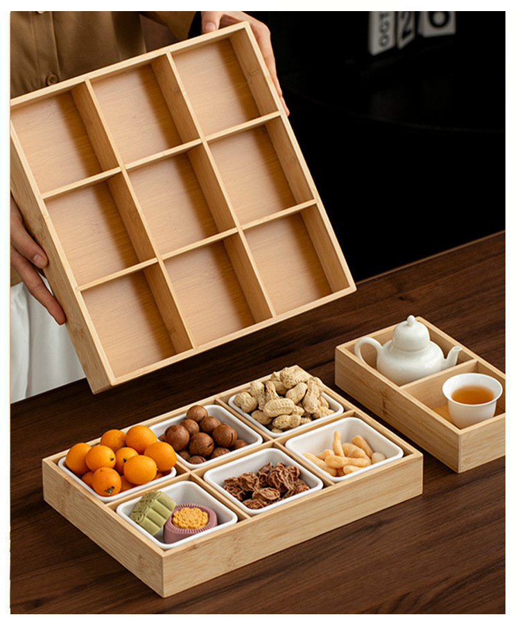 轻奢竹制宫格带盖果盘精致家用茶几摆放水果盘分格点心糖果盒