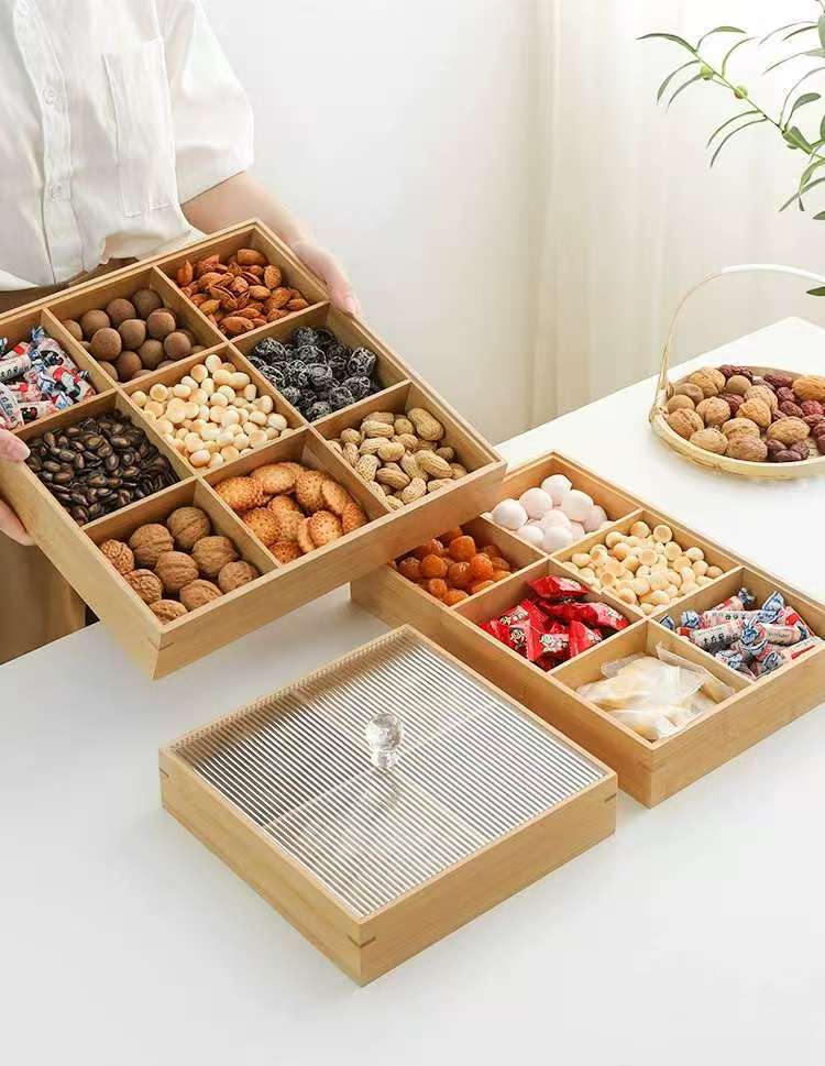 九宮格ナッツ収納ケース中国式実木2024軽贅沢高級ドライフルーツ箱キャンディー間食家庭用果物皿