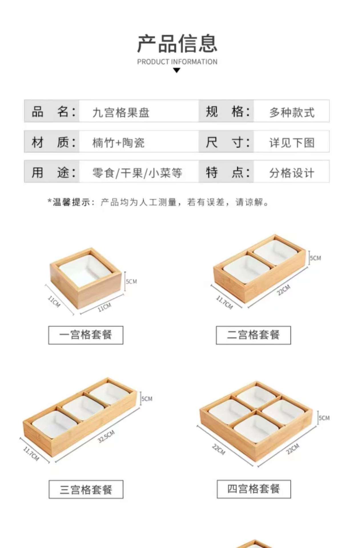 颜色 本色二宫格带盖,本色三宫格带盖,本色四宫格带盖,本色六宫格带盖,本色九宫格带盖,胡桃木色二宫格带盖,胡桃木色三宫格带盖,胡桃木色四宫格带盖,胡桃木色六宫格带盖,胡桃木色九宫格带盖,胡桃木色二宫格带盖+2个白碟,胡桃木色三宫格带盖+3个白碟,胡桃木色四宫格带盖+4个白碟,胡桃木色六宫格带盖+6个白碟,胡桃木色九宫格带盖+9个白碟,本色二宫格,本色三宫格,本色四宫格,本色六宫格,本色九宫格,本色二宫格+2个白碟,本色三宫格+3个白碟,本色四宫格+4个白碟,本色六宫格+6个白碟,本色九宫格+9个白碟,提手四格25*25*6cm,白碟(单个不发货),胡桃木色二宫格,胡桃木色三宫格,胡桃木色四宫格,胡桃木色六宫格,胡桃木色九宫格,胡桃木色二宫格+2个白碟,胡桃木色三宫格+3个白碟,胡桃木色四宫格+4个白碟,胡桃木色六宫格+6个白碟,胡桃木色九宫格+9个白碟