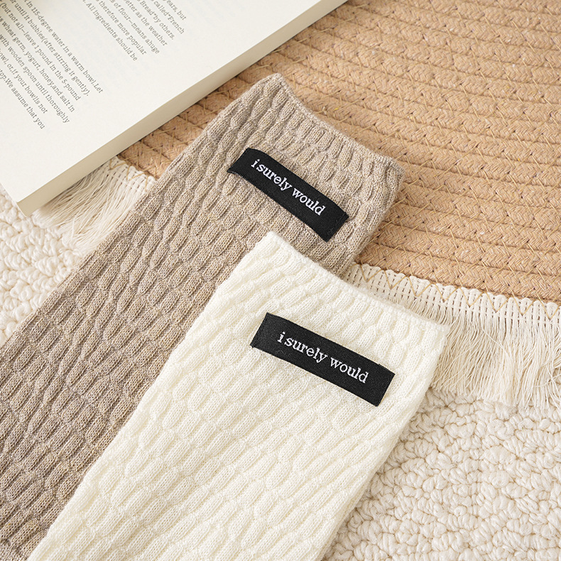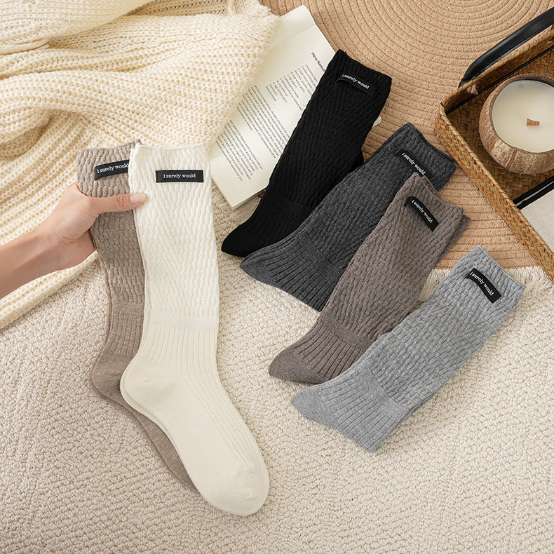 秋冬新款粗线双针袜子女加厚中筒袜日系长筒精梳棉显瘦百搭堆堆袜