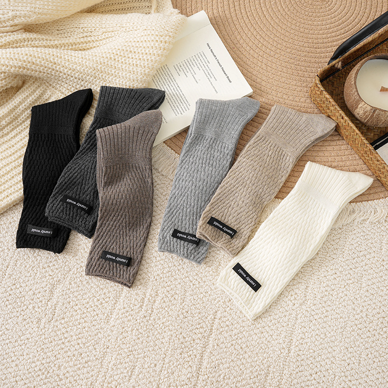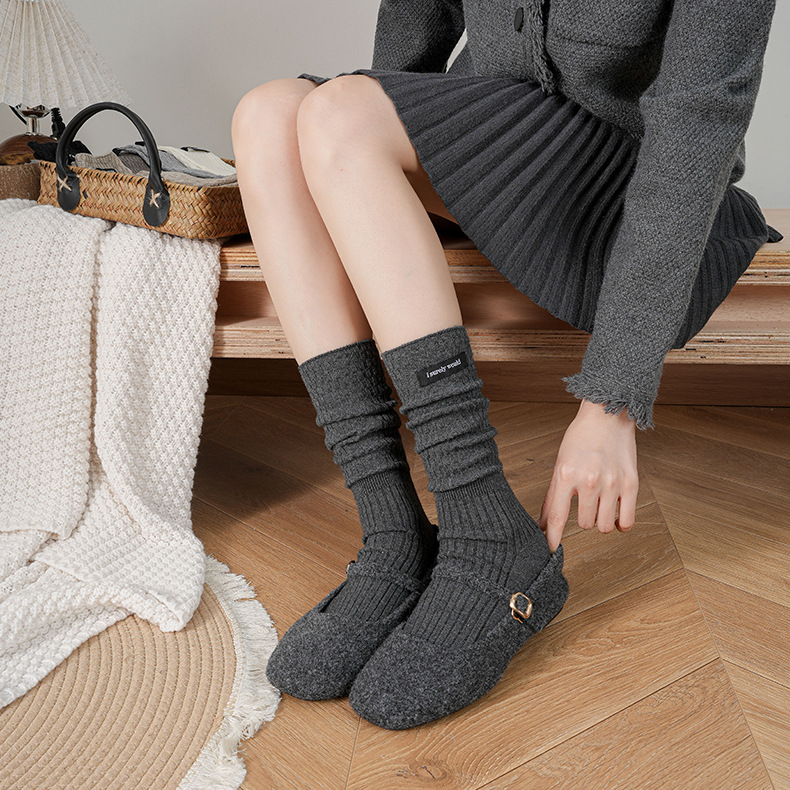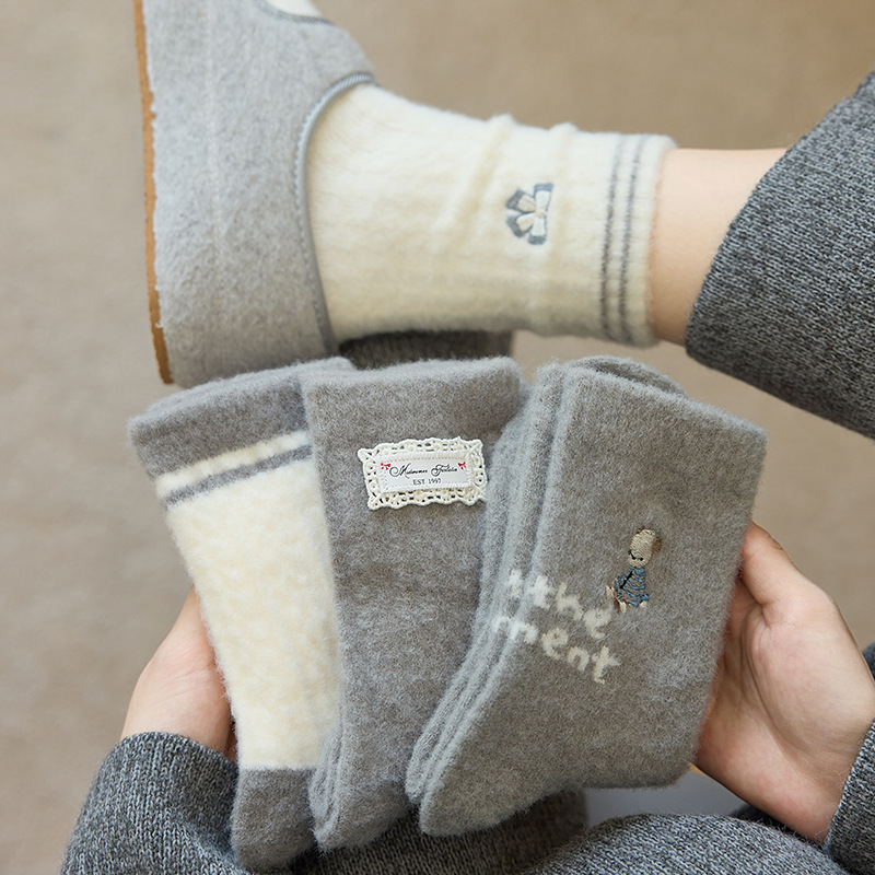 软糯澳绒灰色系复古袜子女加绒加厚保暖中筒袜小众百搭月子睡眠袜