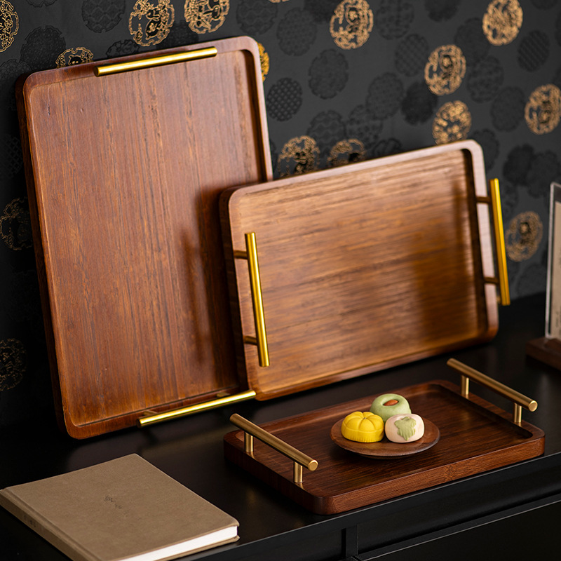 竹木製プレート、ウォールナット色のティートレイ、ドライフルーツプレート、ディナープレート、和風バーベキュープレート、長方形プレート、サービングトレイ、ティーセット