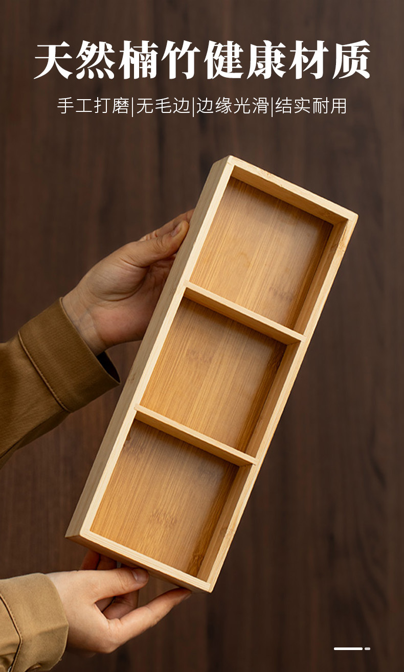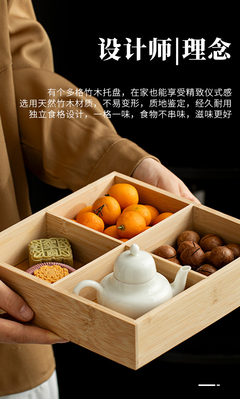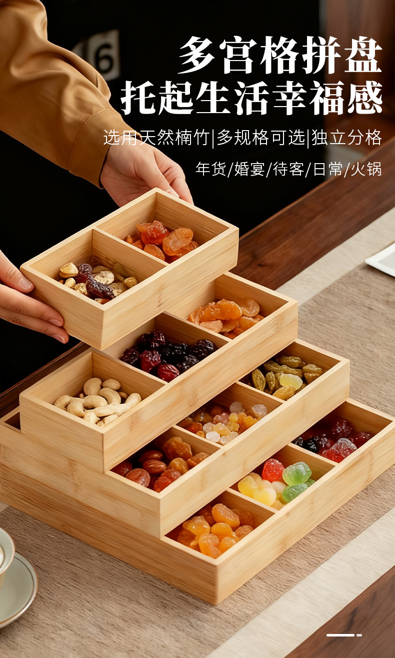 轻奢竹制宫格带盖果盘精致家用茶几摆放水果盘分格点心糖果盒