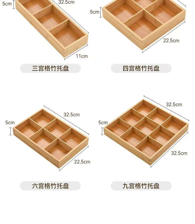 九方格子竹木製トレイ食器フルーツプレート軽食スナックドライフルーツプレート鍋格子おかず大皿ディナープレート