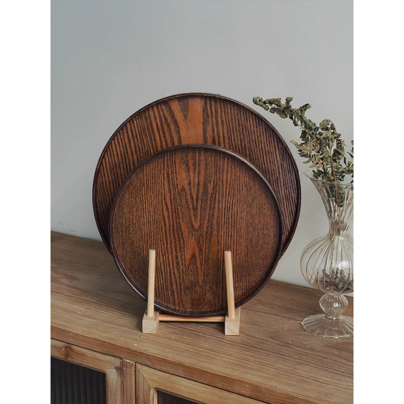 日本式レトロ円形木製トレー家庭用菓子茶皿皿カフェケーキ皿果物皿