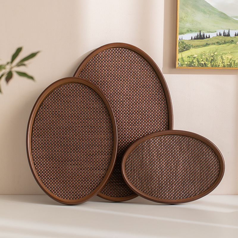家庭用ウォーターカップ用の茶色の楕円形のプラスプレースマットトレイ竹トレイライト高級ハイエンドティートレイ多機能トレイ