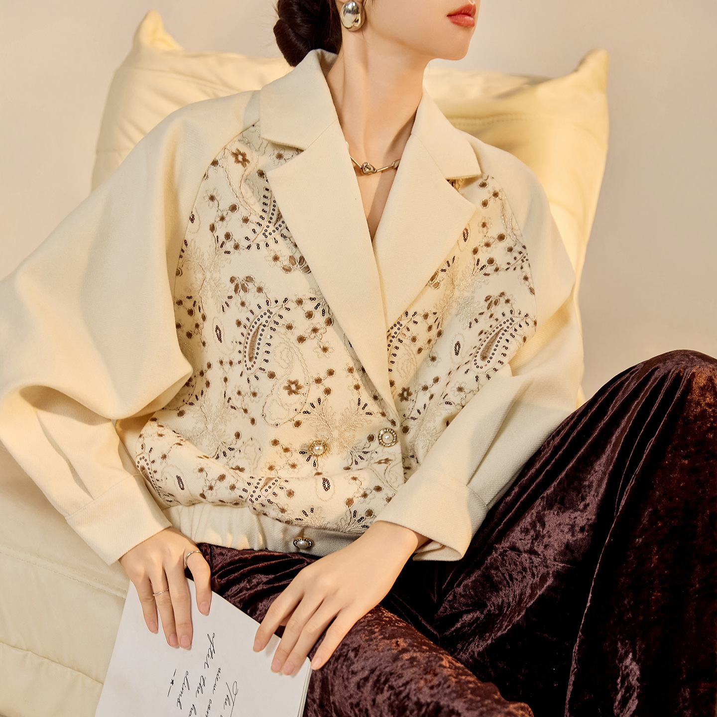 秋季2025新款重工刺绣国风复古百搭上衣时尚翻领棉服外套女 N9068