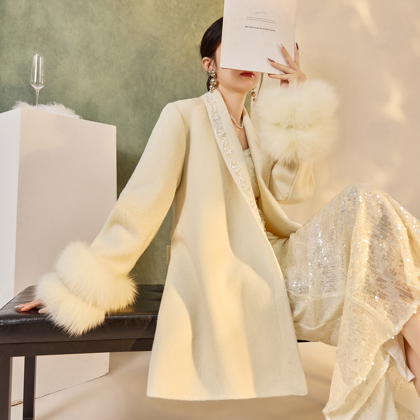 冬季国风2025新款高端新中式双面呢外套袖口狐狸毛羊毛大衣 NY019