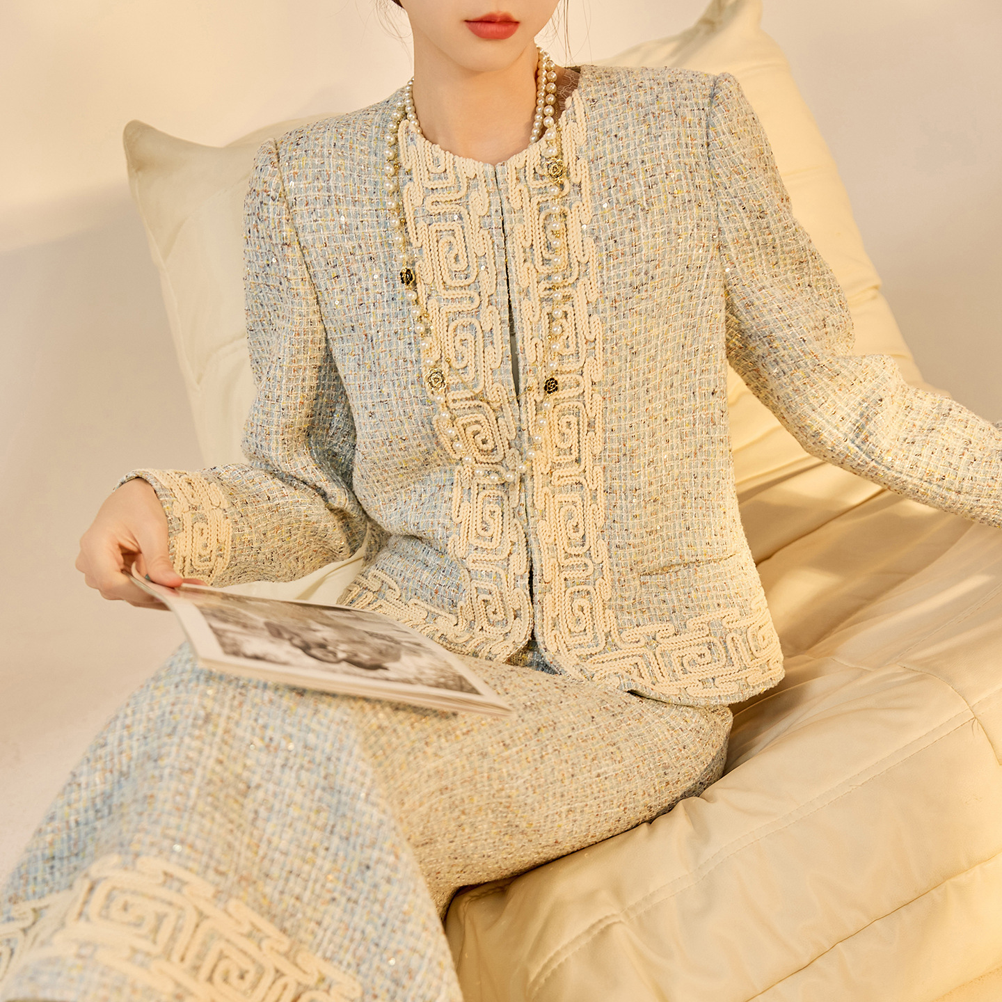 秋季时尚新中式套装女2025高端回字纹轻奢设计短外套半身裙 N9022