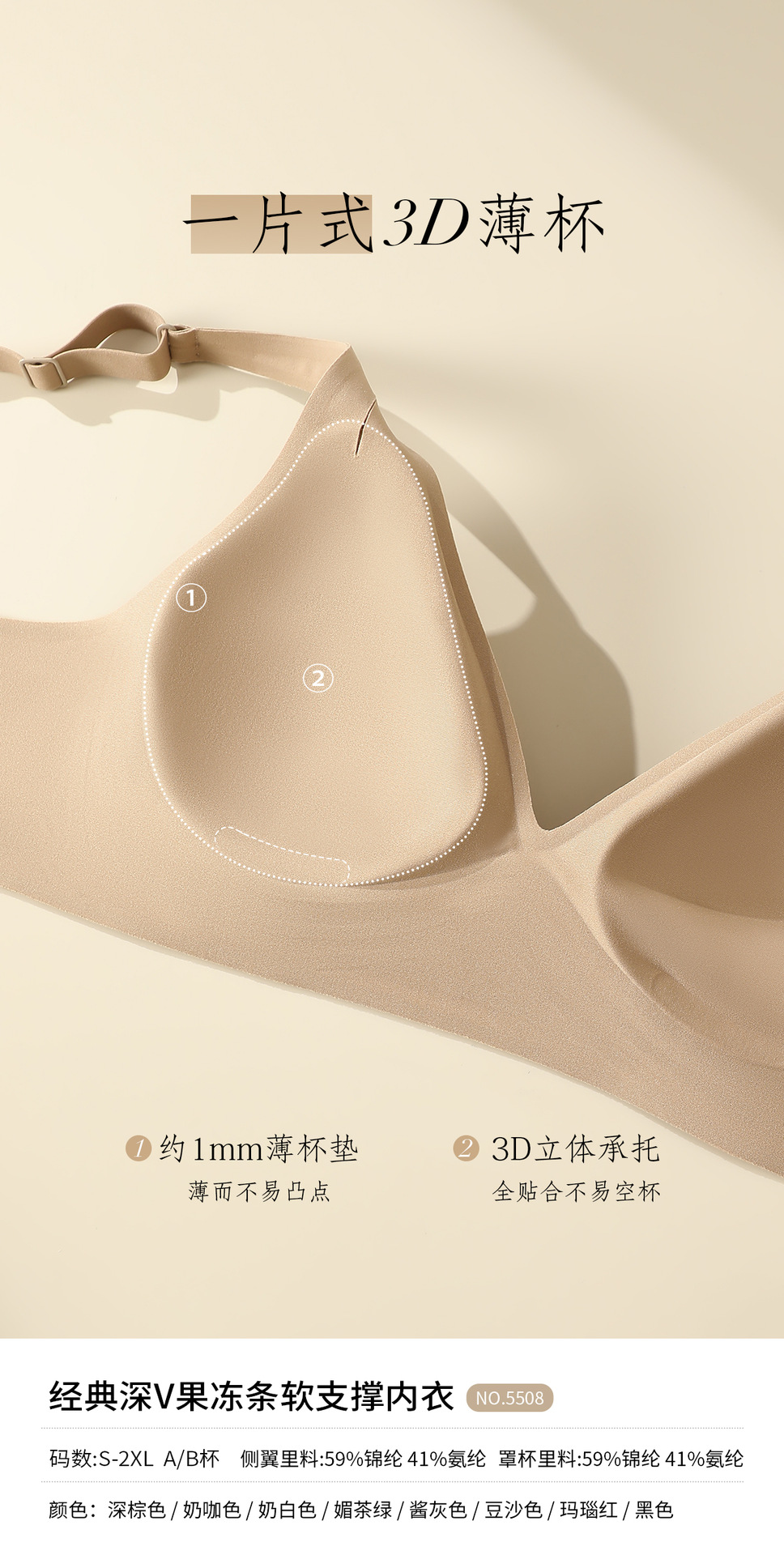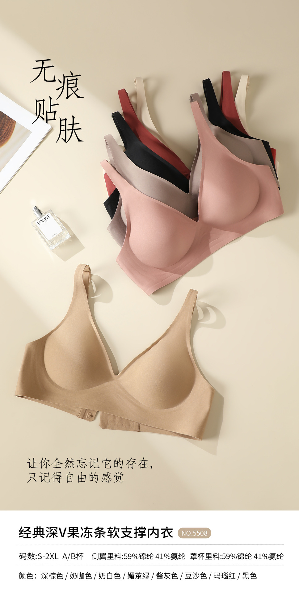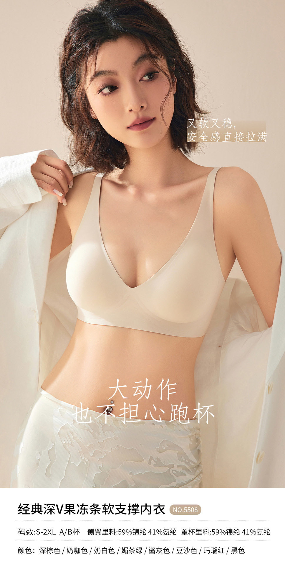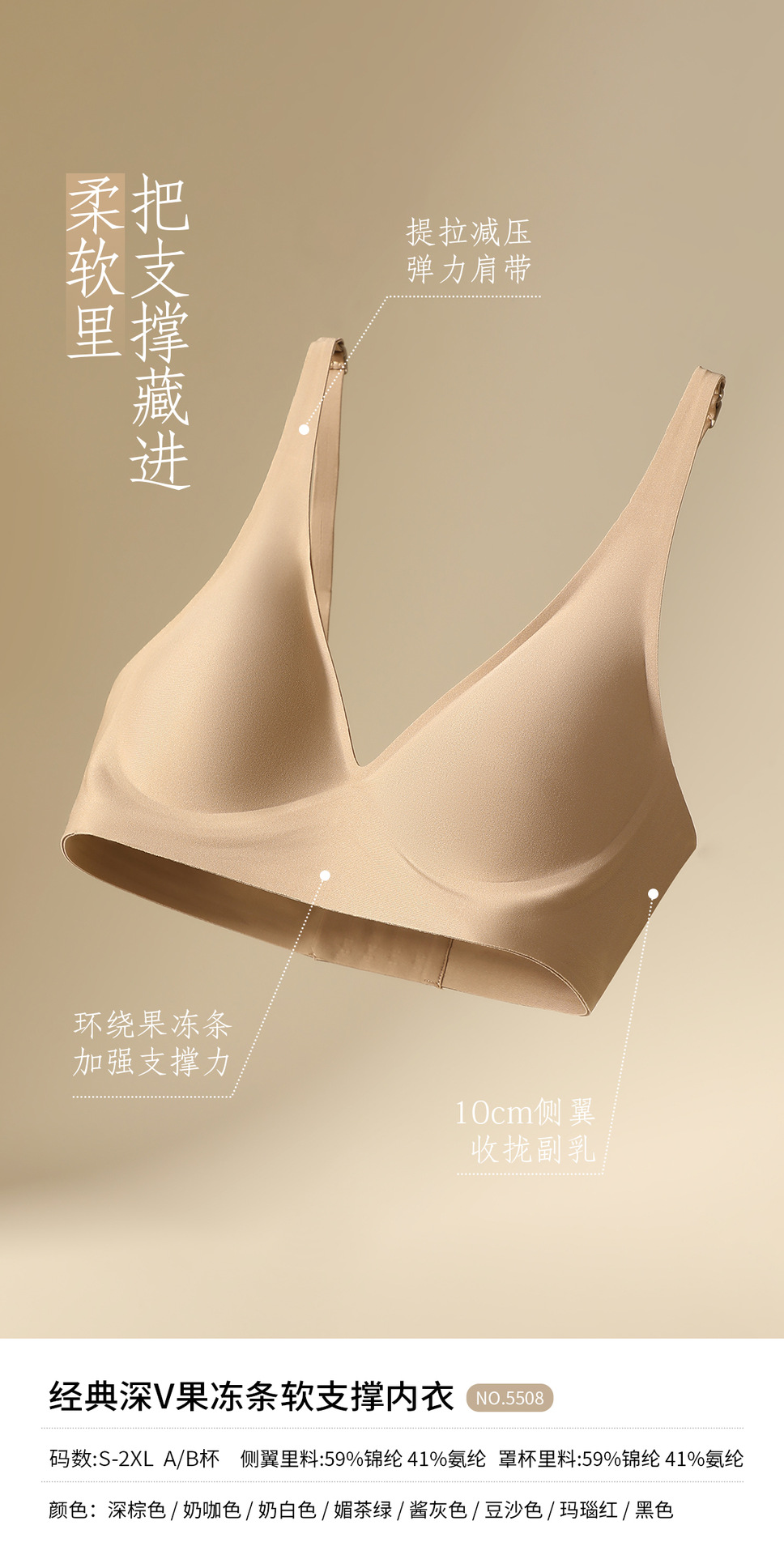 经典深V果冻条软支撑内衣大胸显小胸聚拢防下垂承托柔软舒适文胸