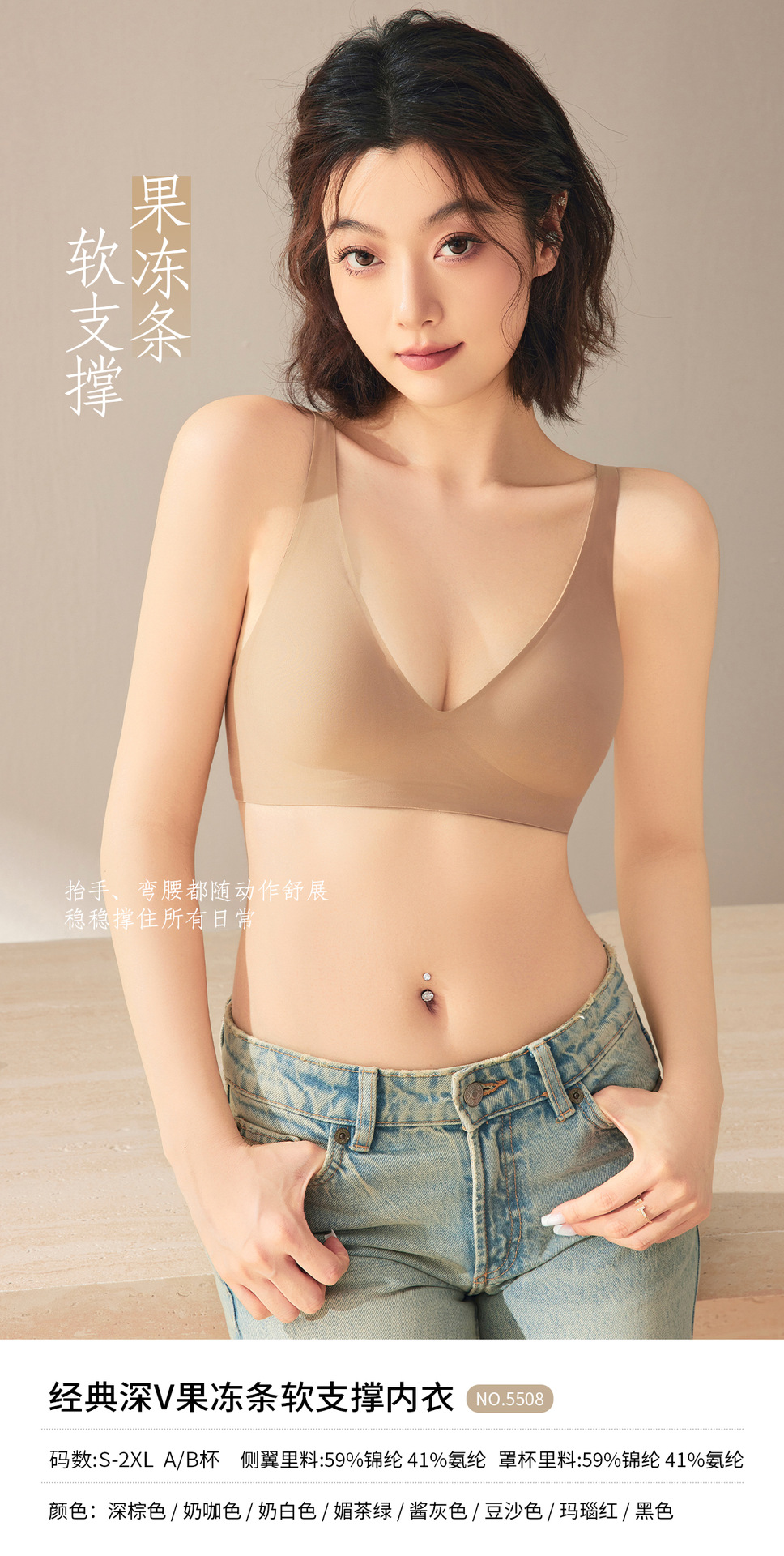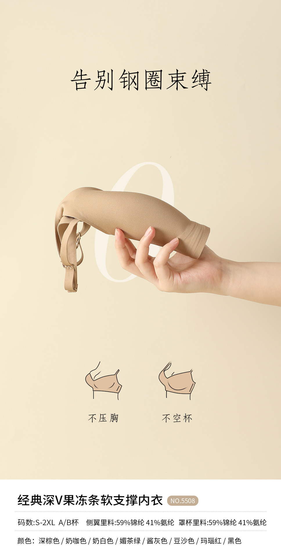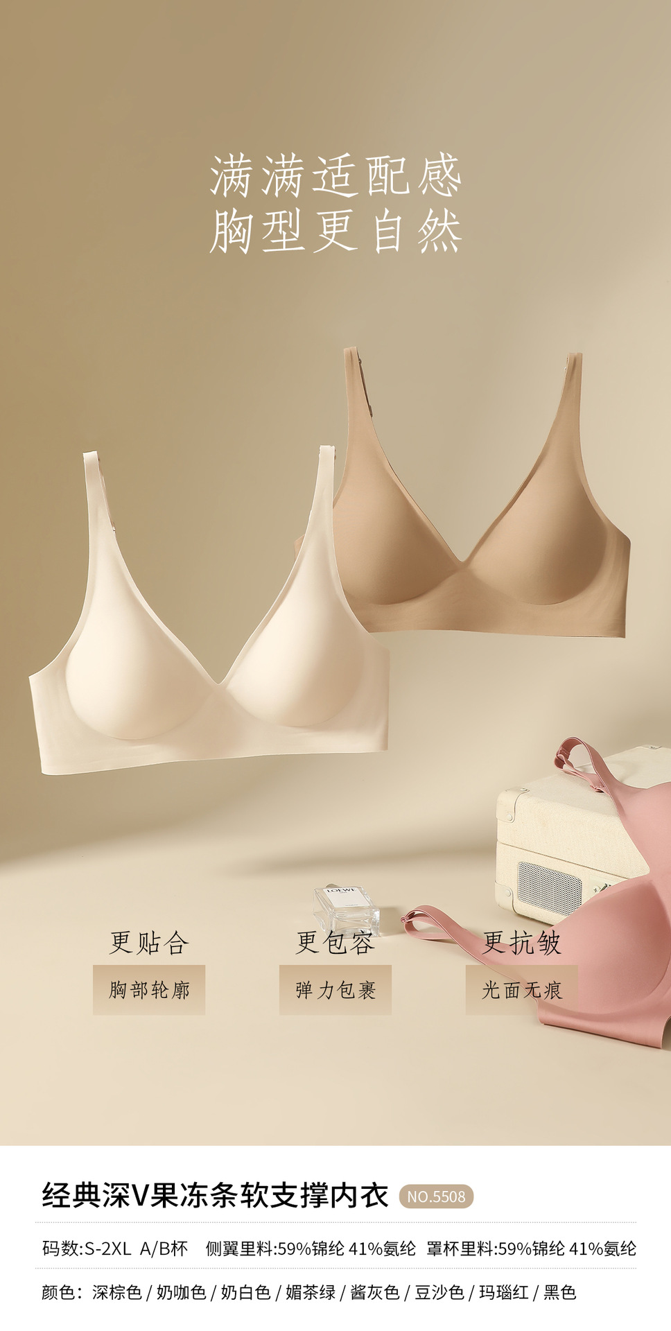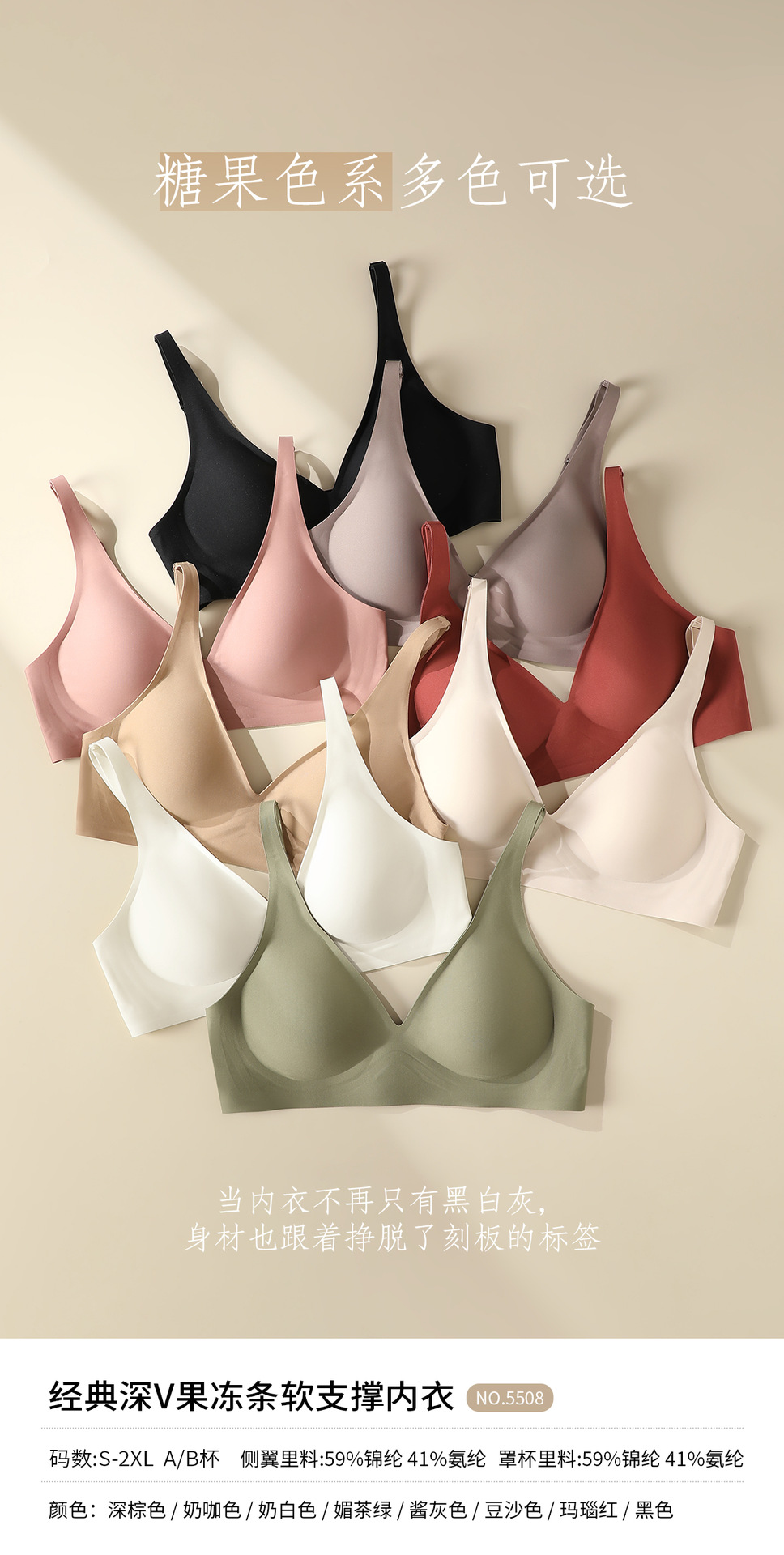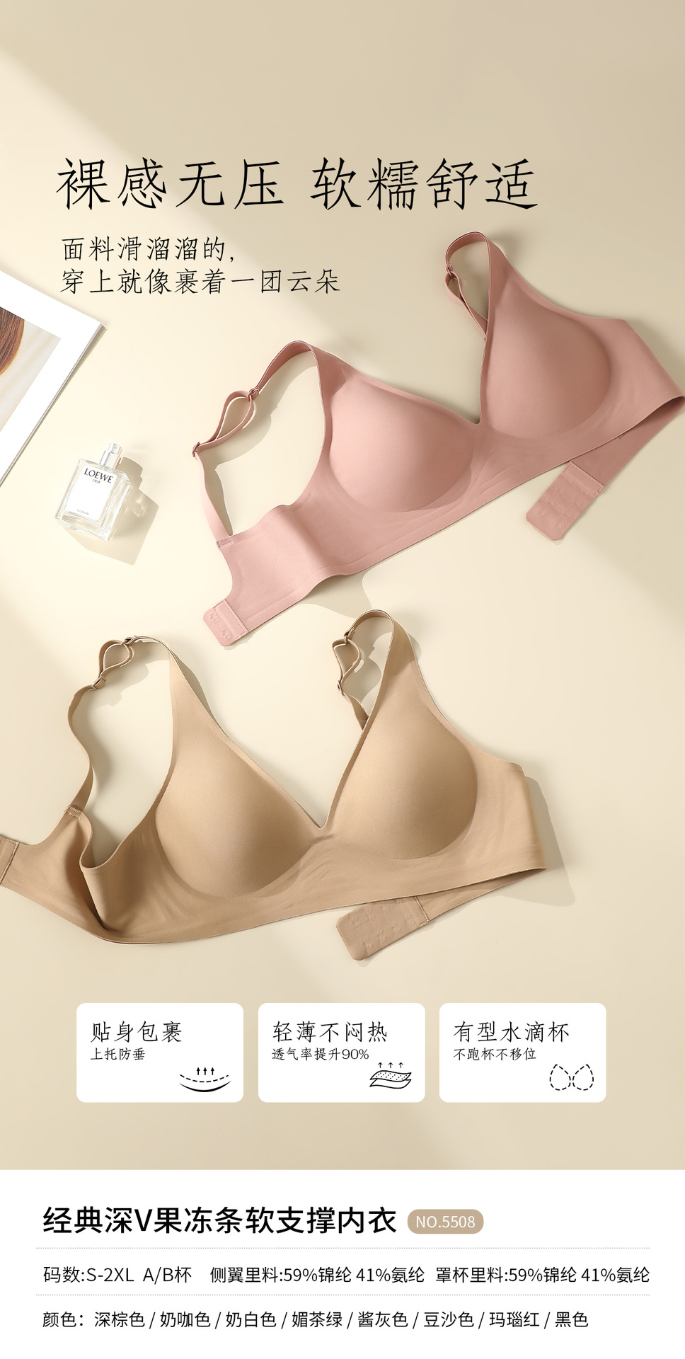 经典深V果冻条软支撑内衣大胸显小胸聚拢防下垂承托柔软舒适文胸