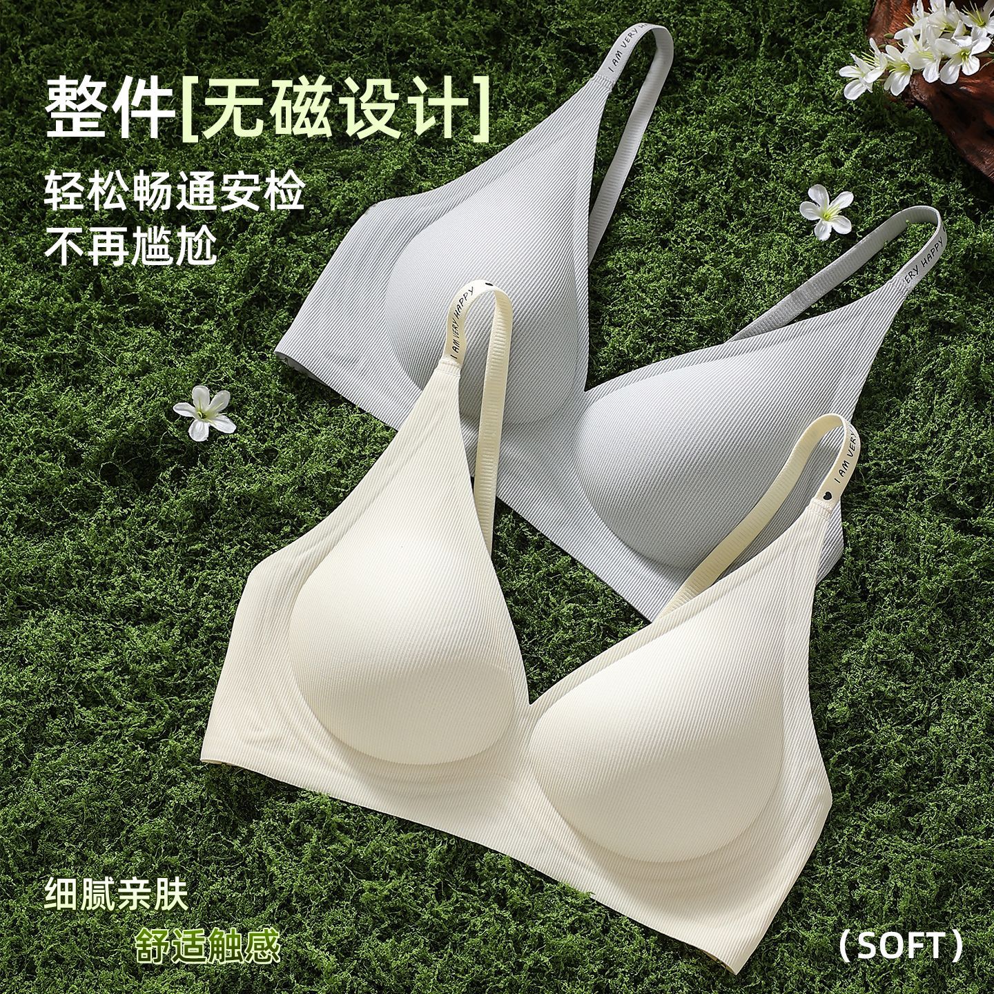 超薄美背无痕隐形内衣显小兔耳杯提拉一字扣无钢圈细肩带露背文胸
