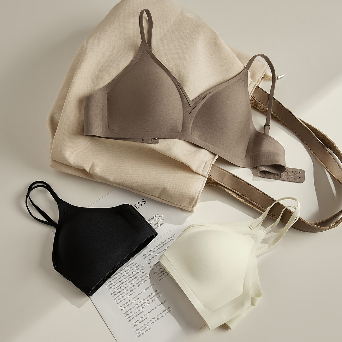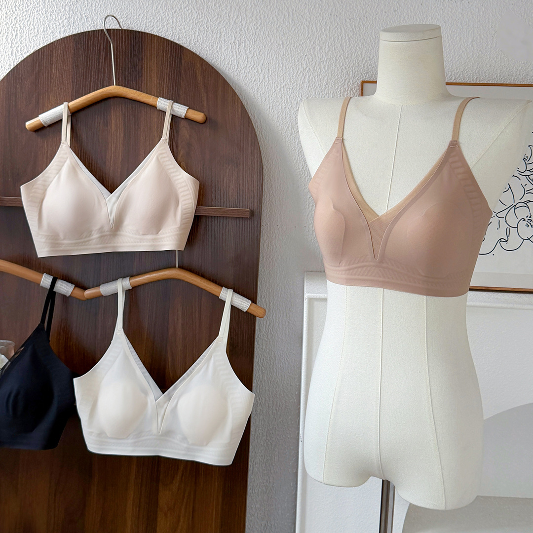 シンプルで高級感のあるシームレスブラ 女性用 薄型 小胸を大きく見せる ノンワイヤー 快適なサポートと通気性のあるブラジャー