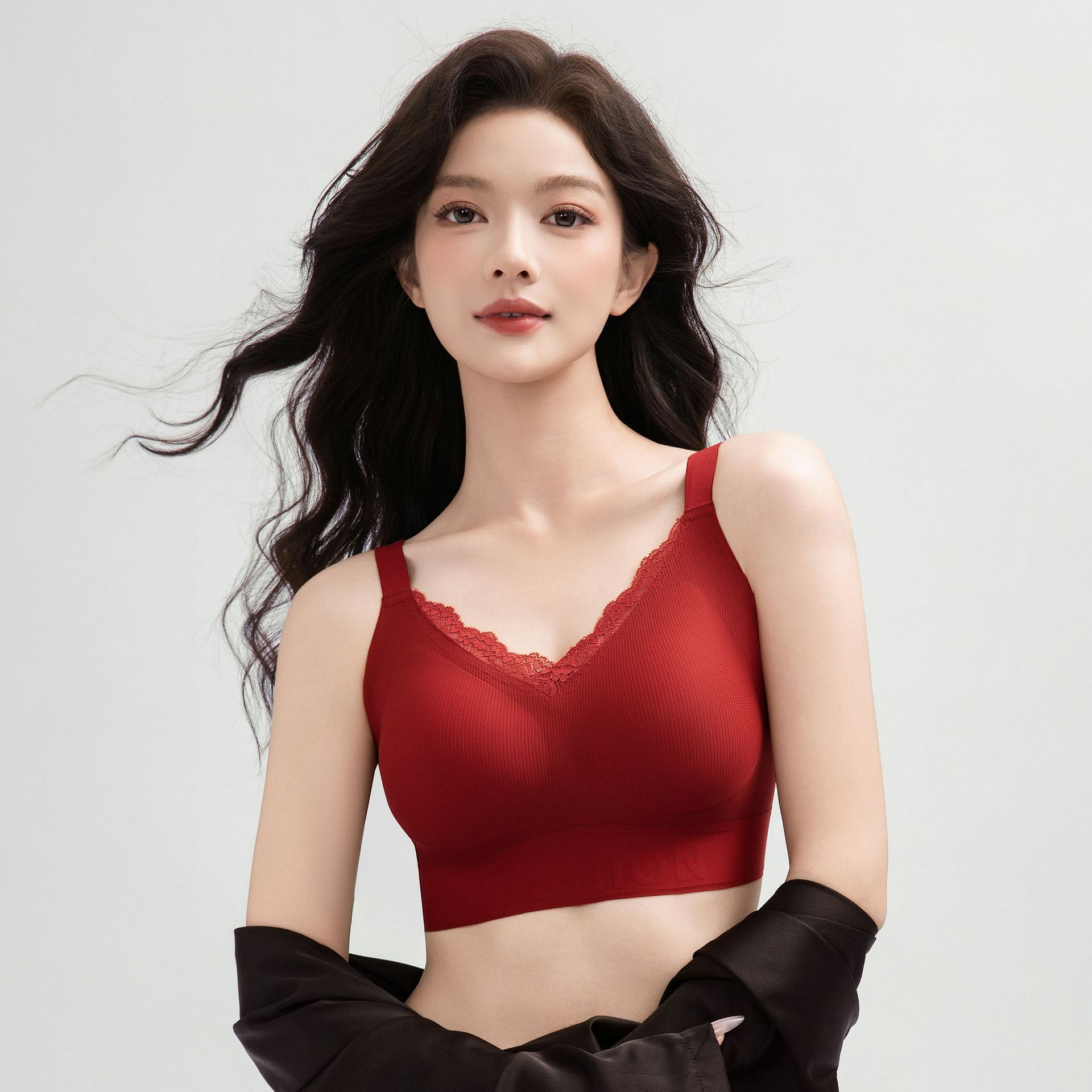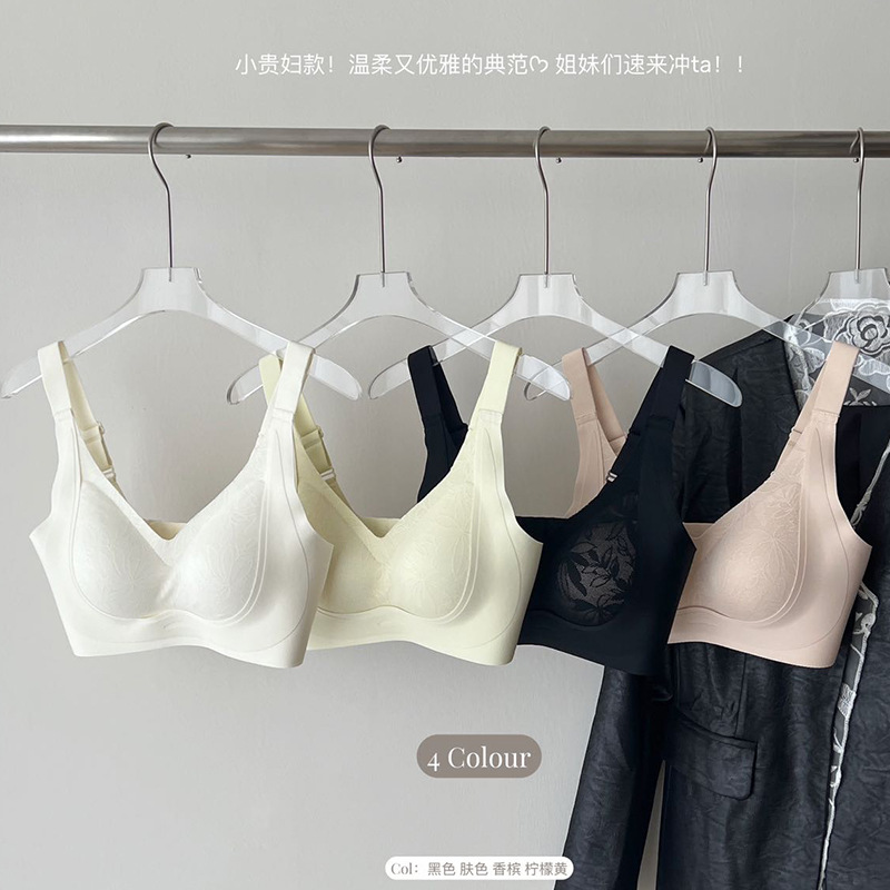 蕾丝无痕背心内衣透气亲肤裸感文胸薄款大胸显小无钢圈固定杯胸罩