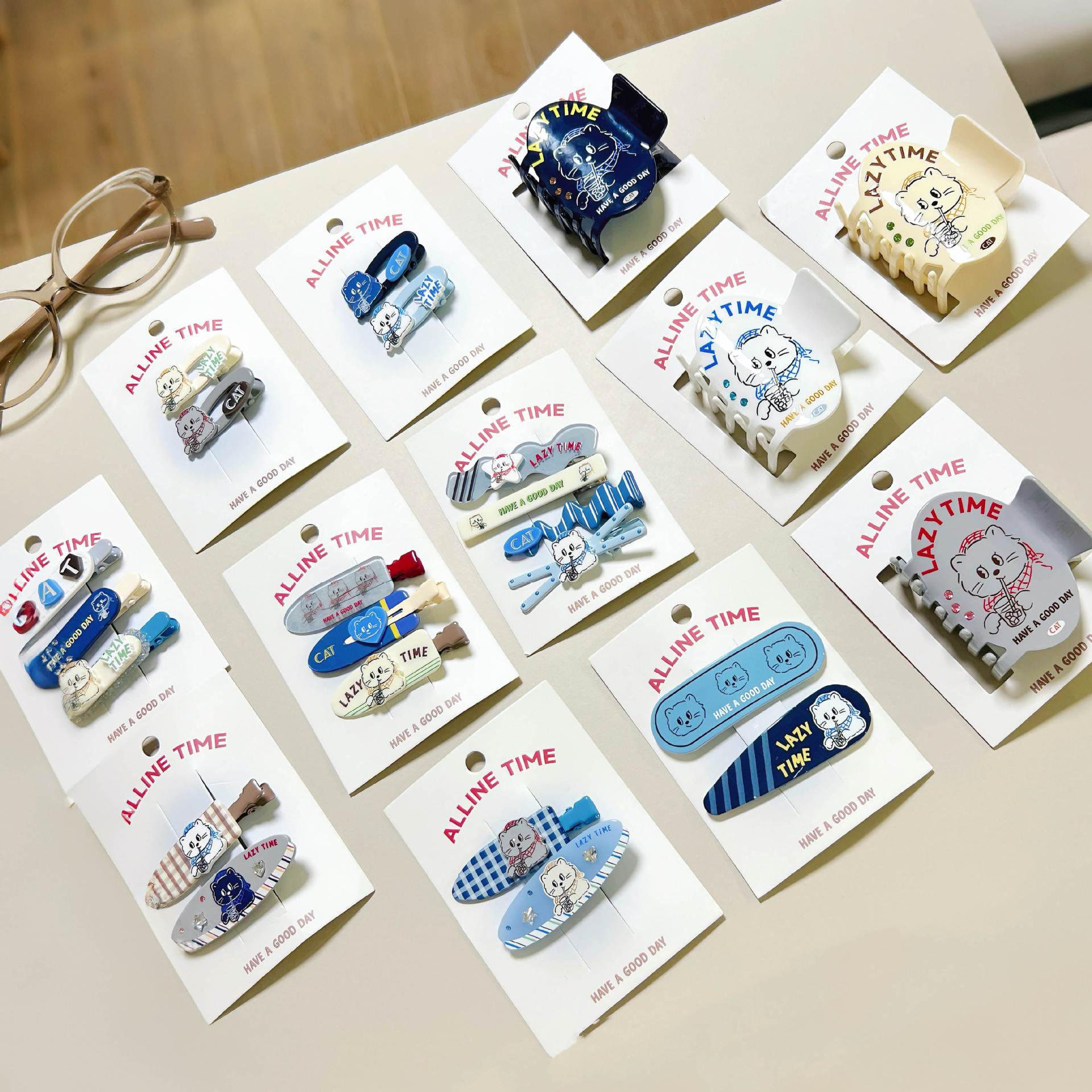 alline新款猫咪狗狗格子圆珠复古星星波点格子鸭嘴夹甜美化妆夹