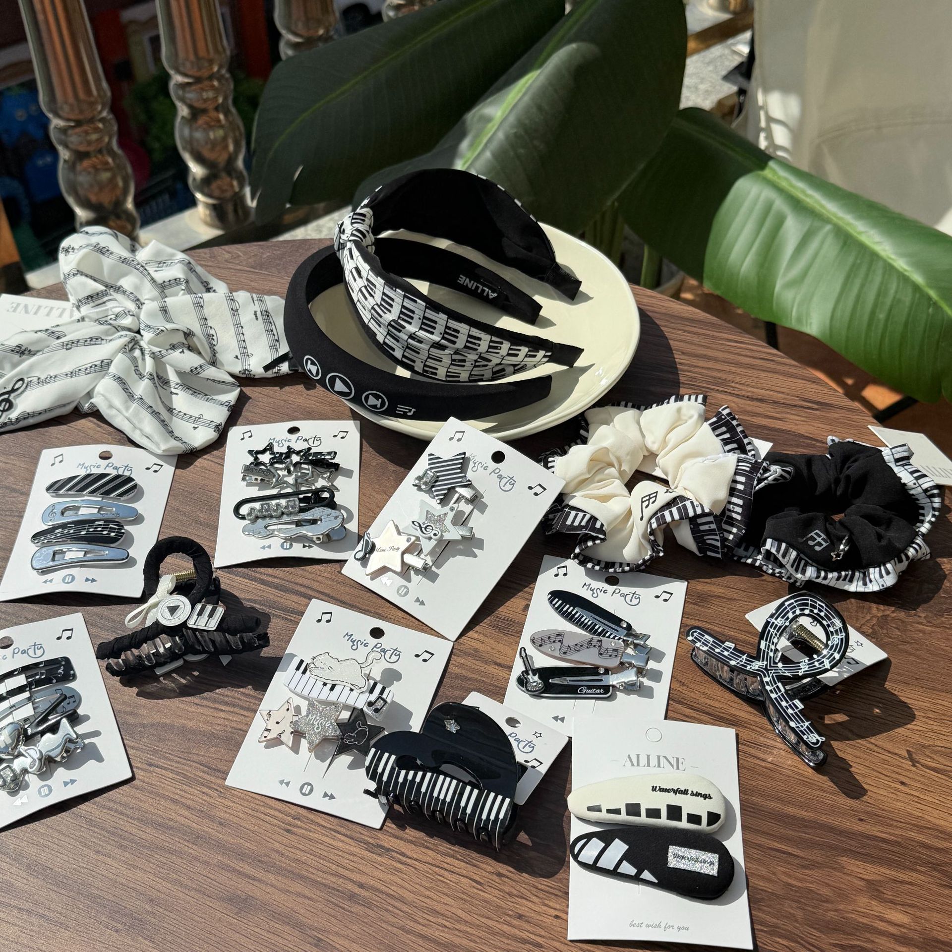 Alline韓国版ピアノ星猫音符白黒カチューシャ