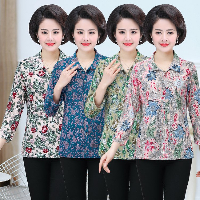 ママシャツ夏アイスシルク花柄シャツ大きいサイズ中高年女性のお腹カバー七分袖薄手トップス