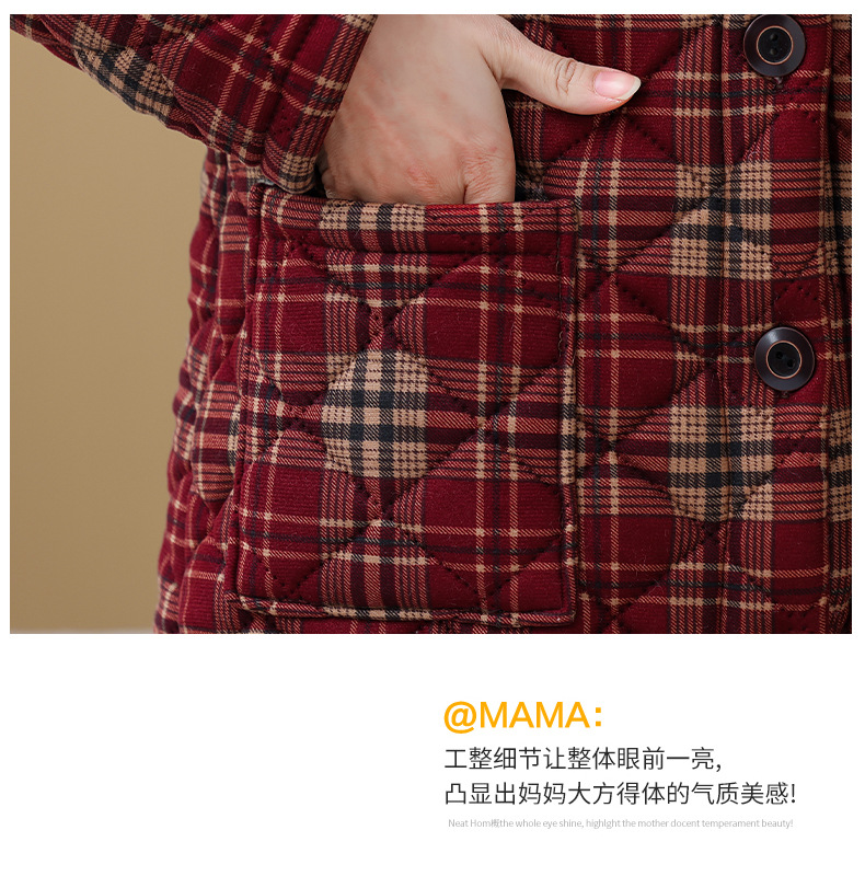 冬季中年妈妈装棉服宽松加绒加厚新款棉衣保暖中长款外套格子棉袄