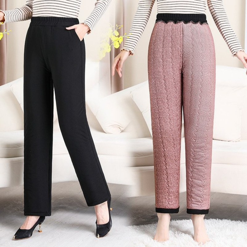 中老年女装秋冬加棉加厚外穿棉裤妈妈裤子冬季松紧高腰保暖直筒裤