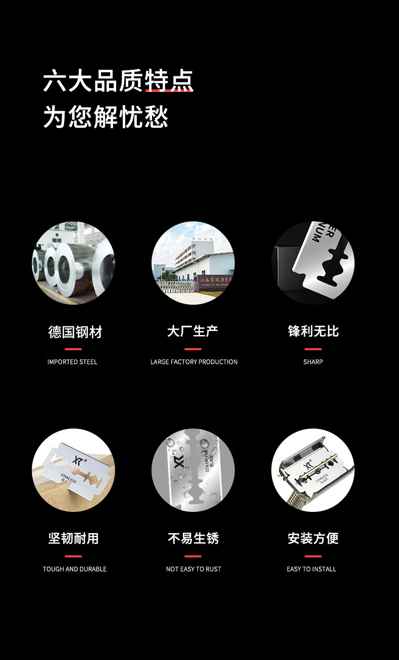 犀瑞老式手动双面剃须刀片100片装男士刮胡剃须刀不锈钢剃须刀片