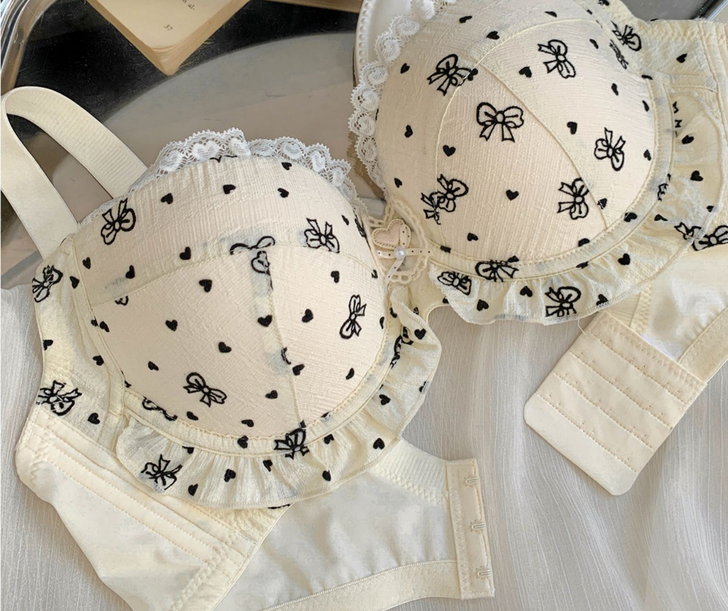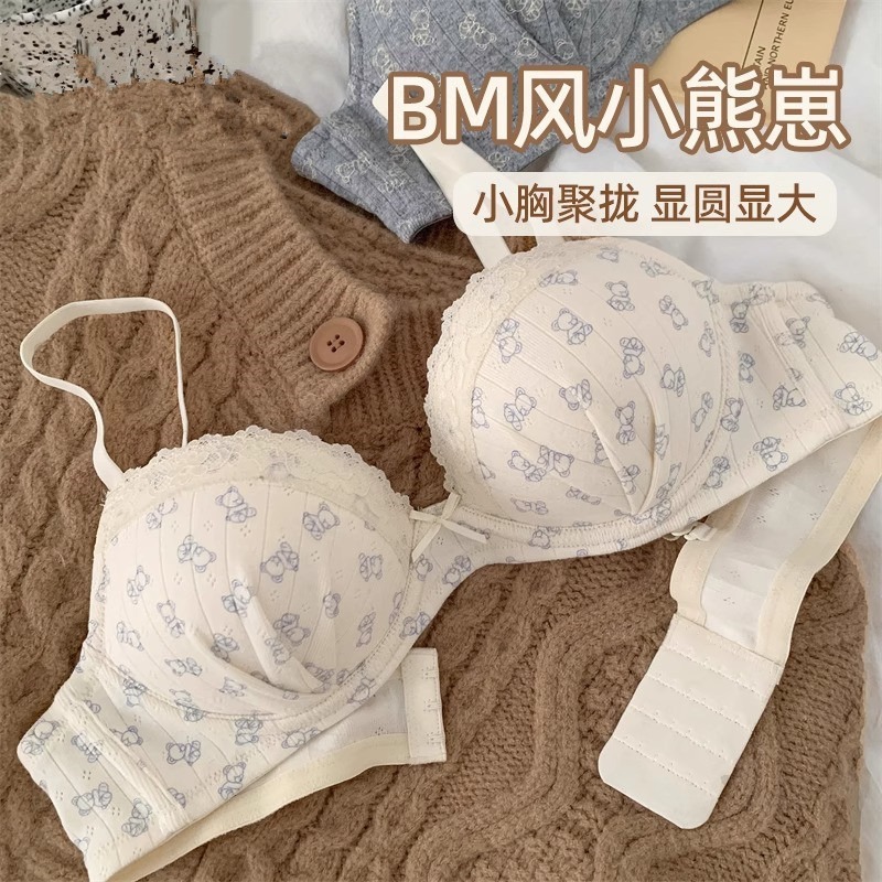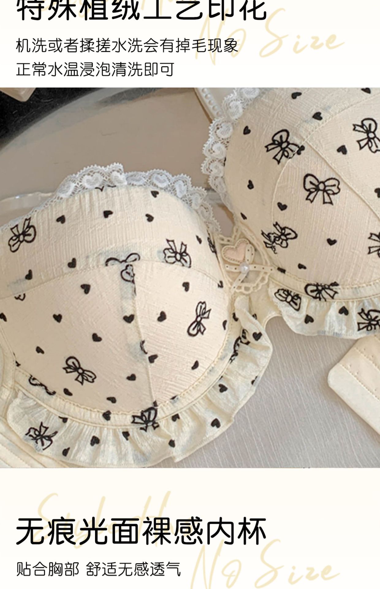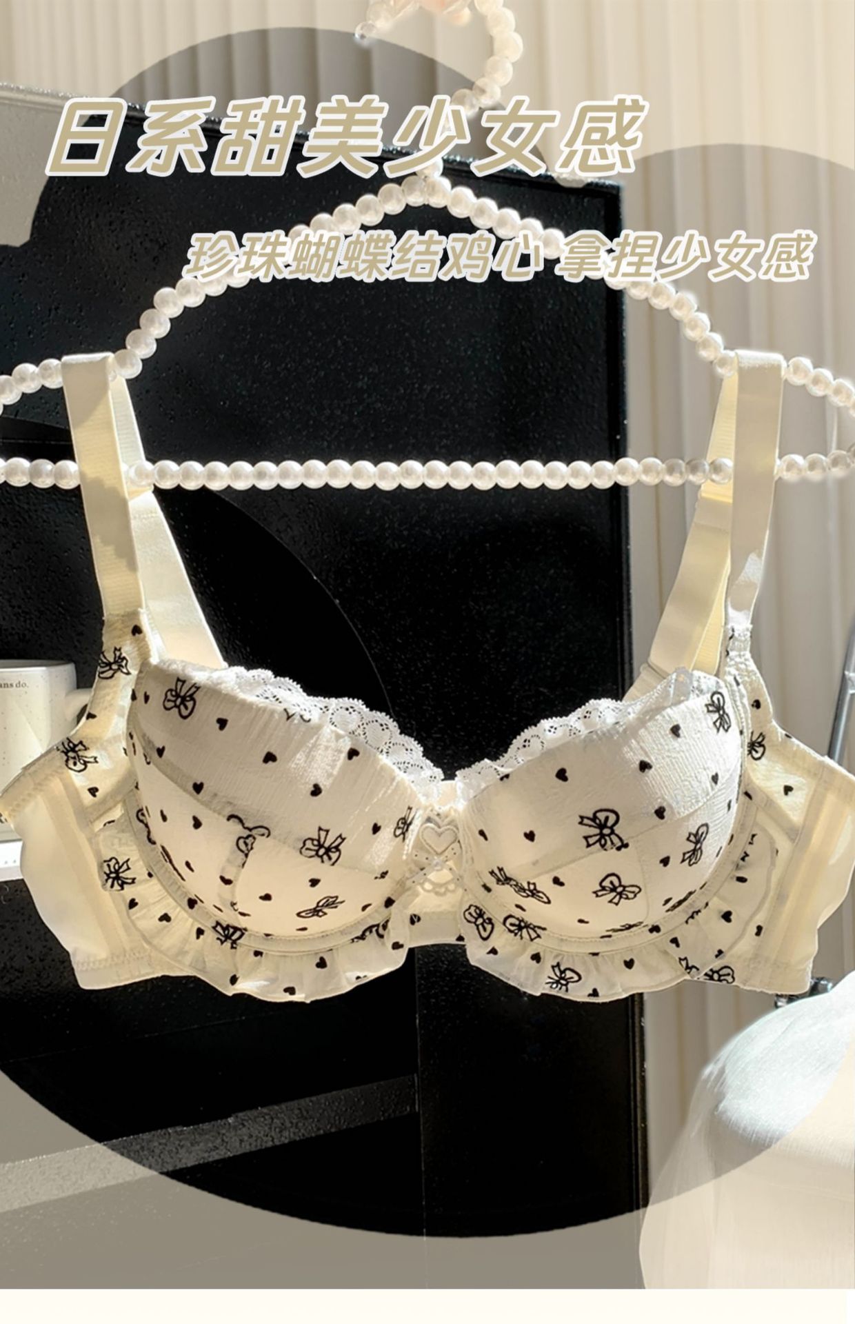 纯欲蕾丝内衣女大胸显小舒适无钢圈女士胸罩新款无钢圈可爱风内衣