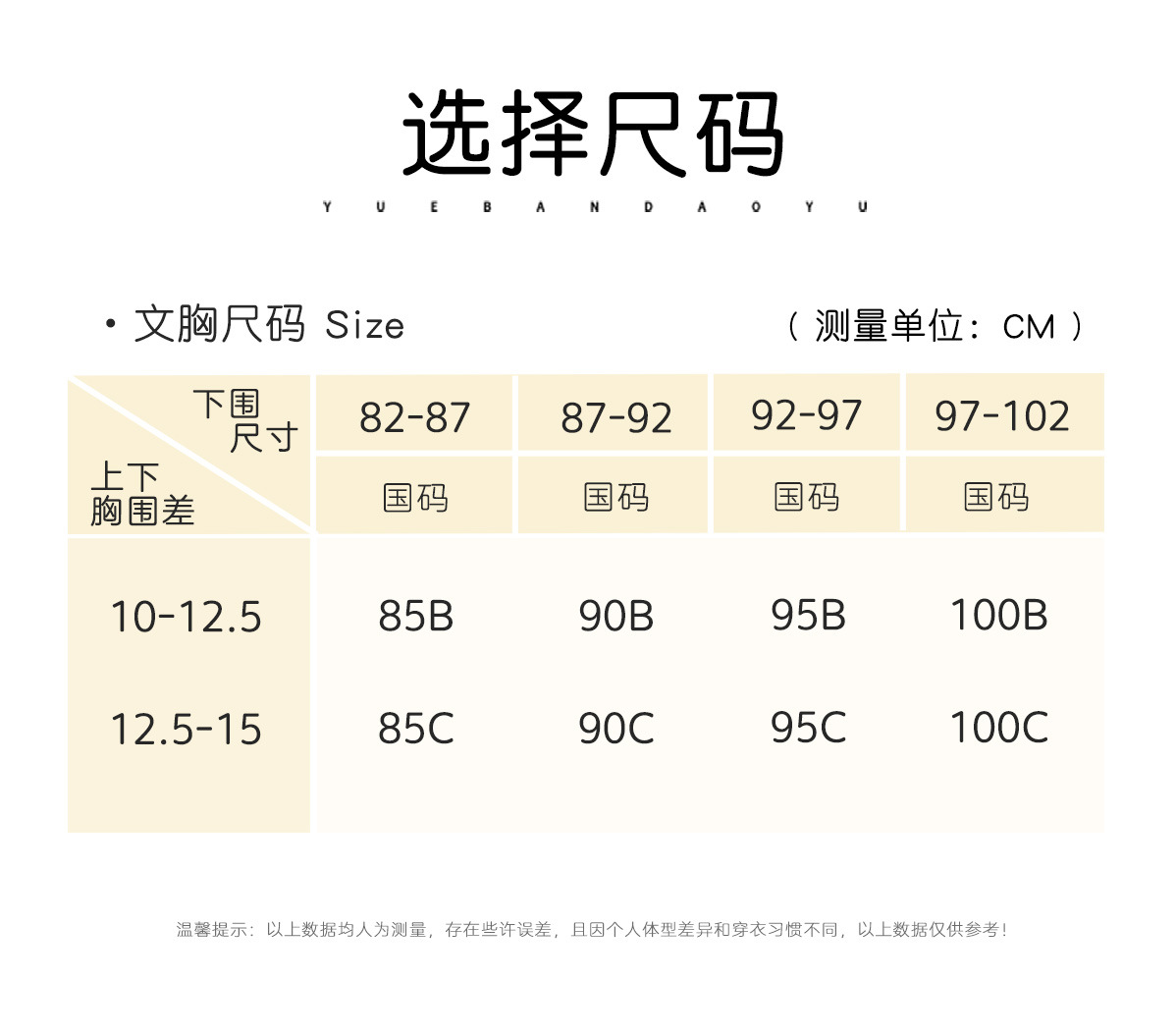 尺码 36/80BC,38/85BC,40/90BC,42/95BC,44/100BC