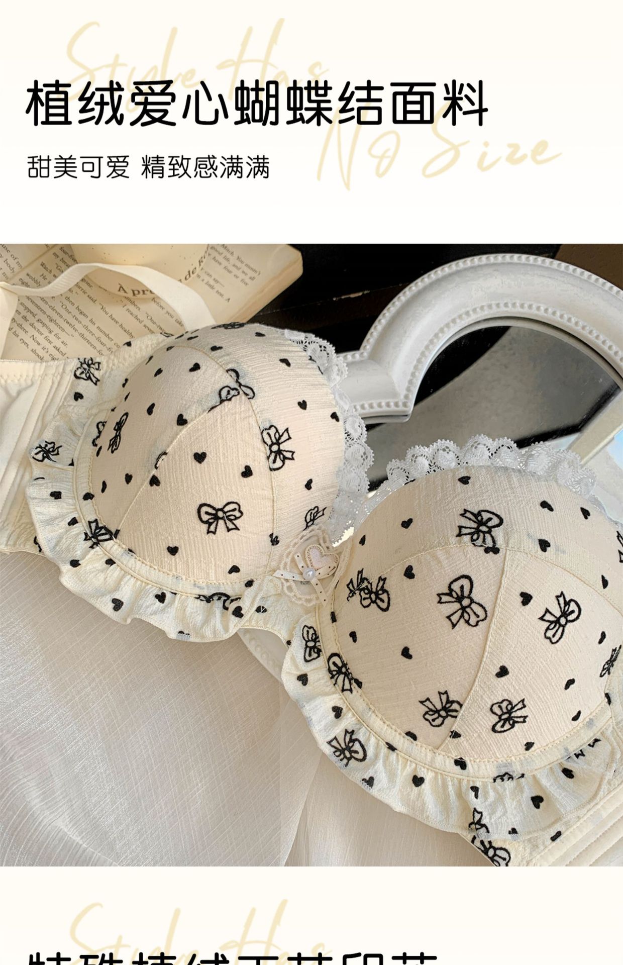 纯欲可爱蝴蝶结大码蕾丝内衣女胖MM大胸防垂新款轻薄款无痕文胸罩