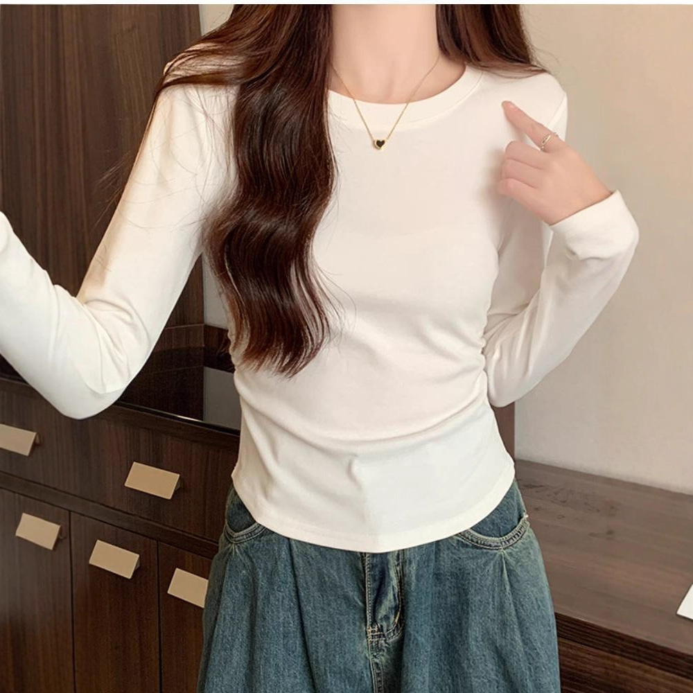 秋冬薄款纯色圆领小个子正肩内搭收腰短款长袖打底衫针织衫上衣女