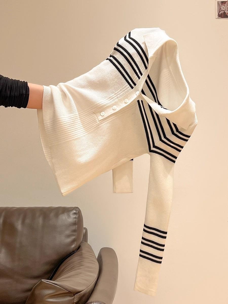 2025年初秋純粋な魅力のワンショルダー万能ウール混紡ニット長袖インナーウェア韓国風通勤セーター