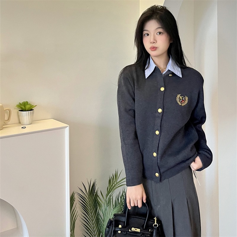 秋冬季英伦学院风外穿针织衫女短款显瘦宽松2025新款开衫毛衣外套