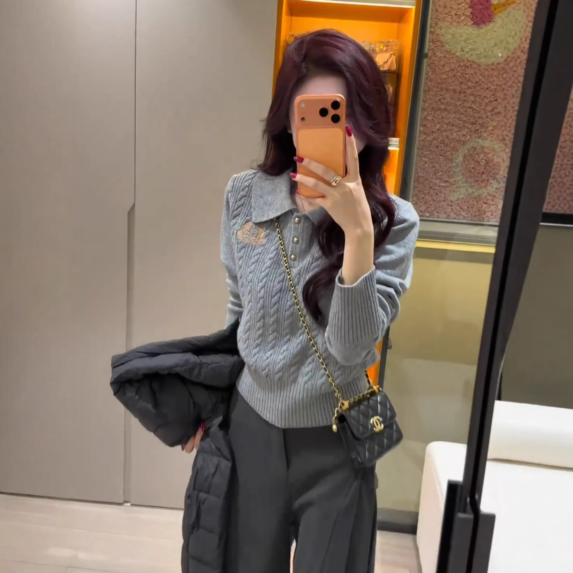 赵露思同款冬季针织衫秋装修身显瘦百搭圆领加厚毛衣灰色上衣女