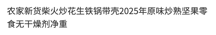 包装规格 2两柴火炒花生,1斤柴火炒花生,2斤柴火炒花生,5斤柴火炒花生,10斤柴火炒花生