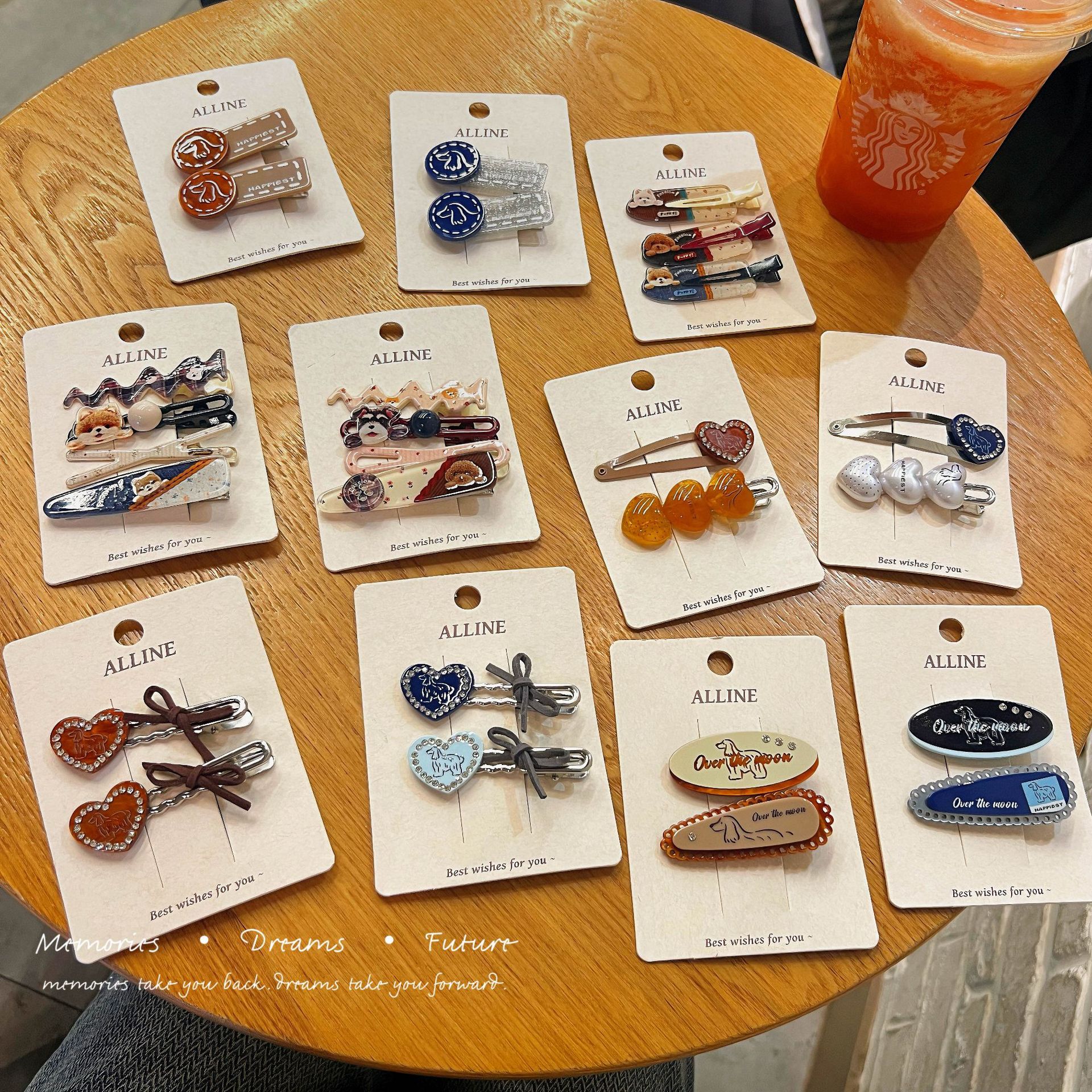 alline新款镂空星星运动复古狗狗苹果点钻鸭嘴夹甜美化妆夹边夹