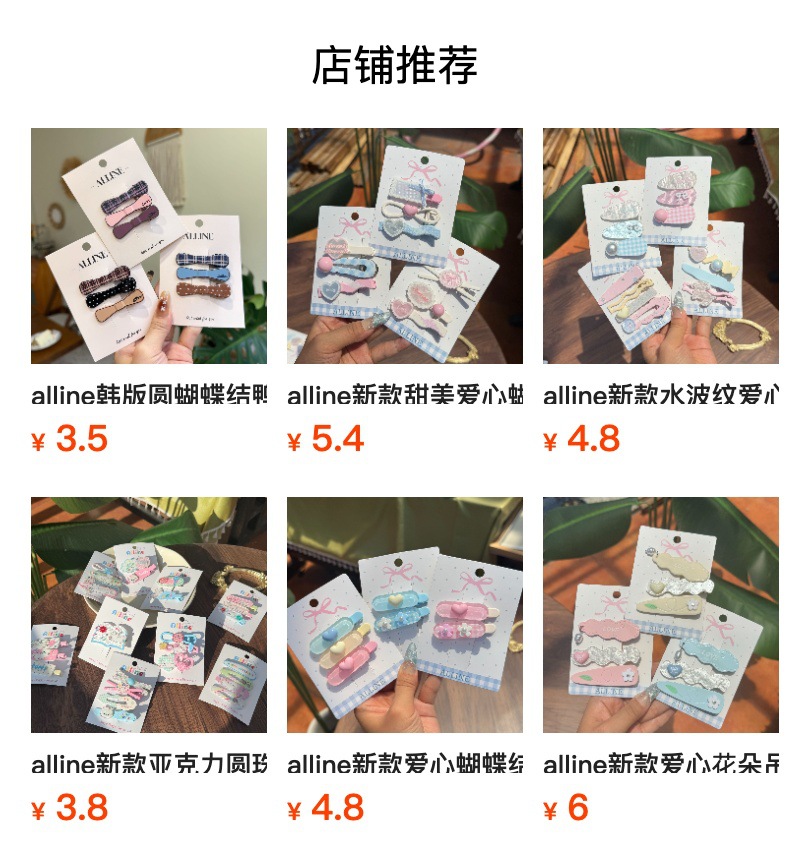 alline新款圆珠爱心蝴蝶结星星狗狗纽扣鸭嘴夹甜美化妆夹边夹