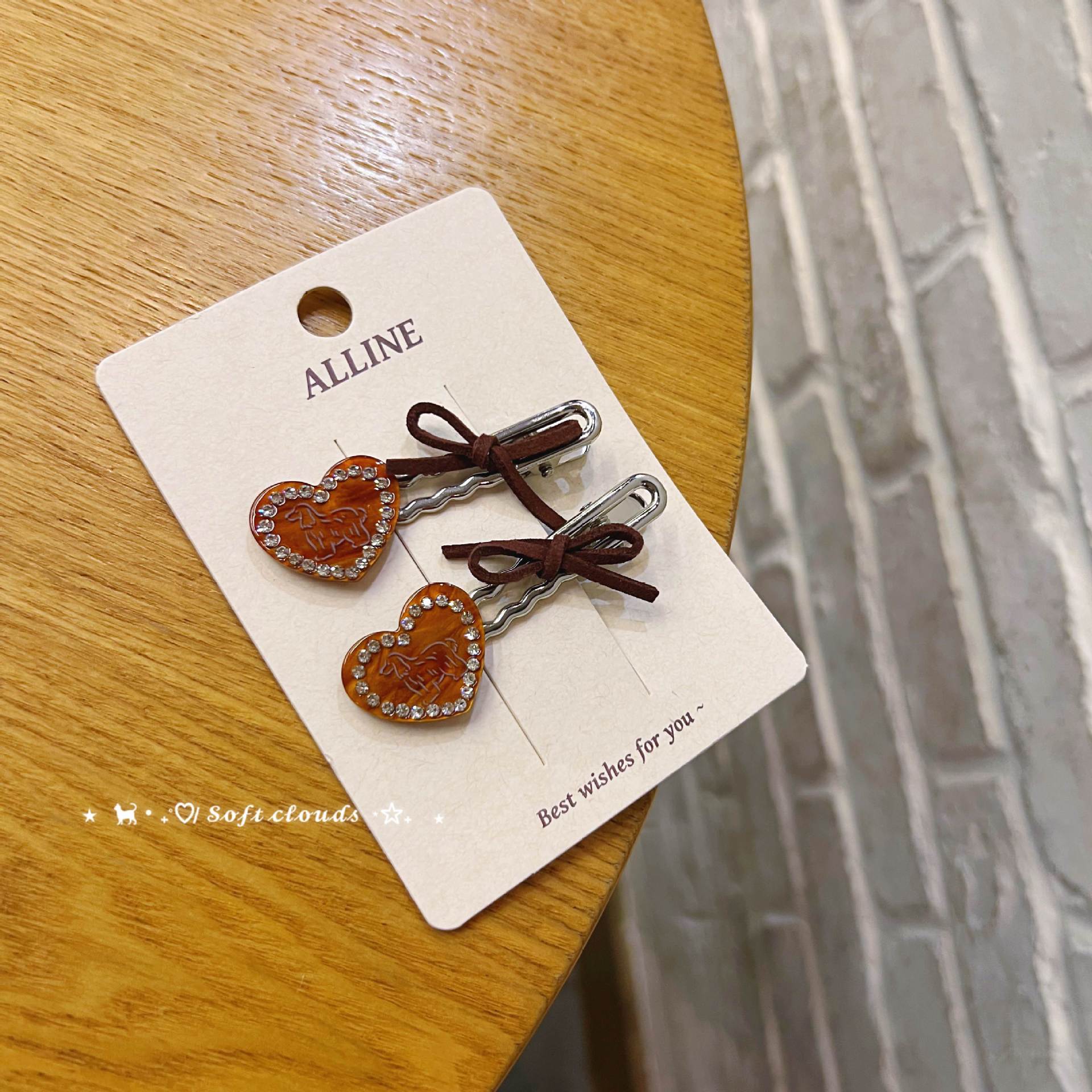 alline新款红格子学院蝴蝶结圆珠抓夹波点爱心鸭夹少女刘海夹发饰