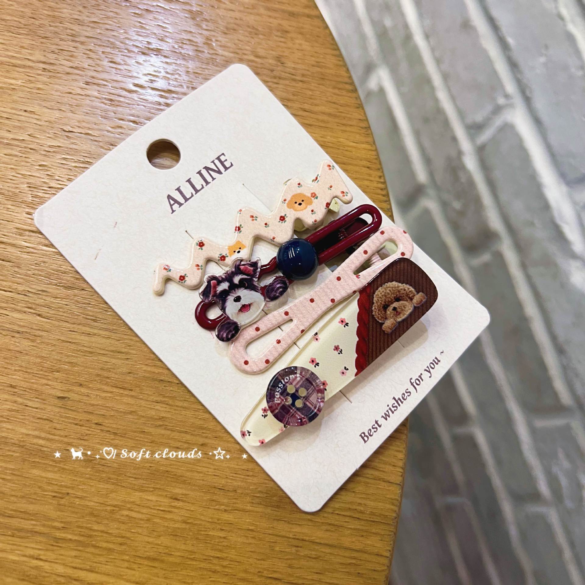 alline秋冬苹果小狗抓夹甜美眼镜高级感刘海夹对夹发饰女高级感