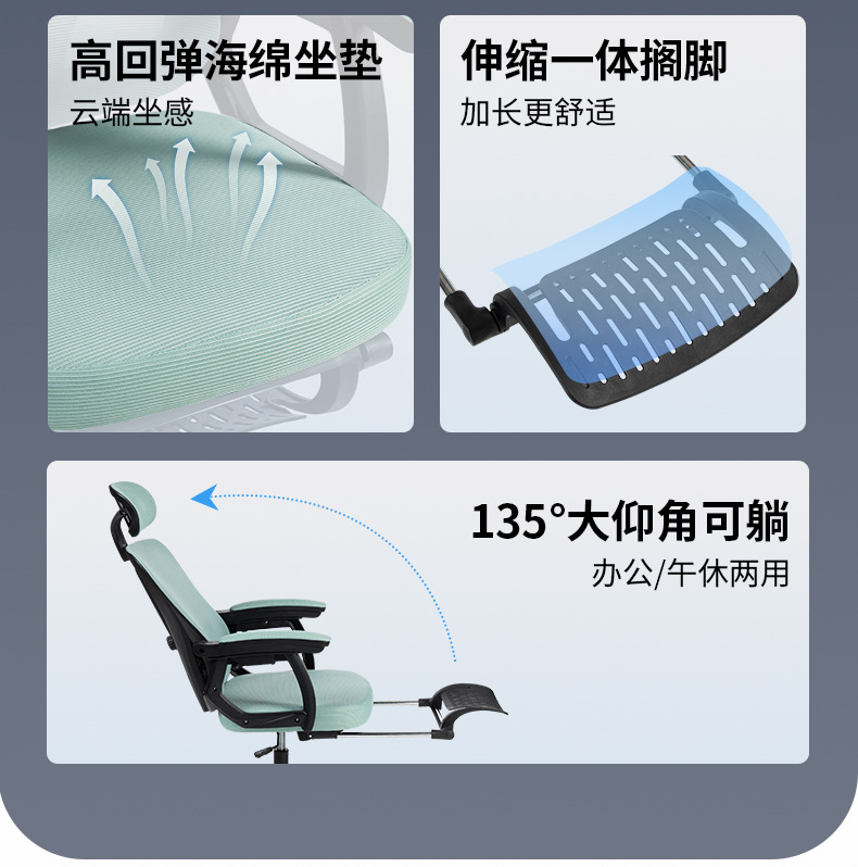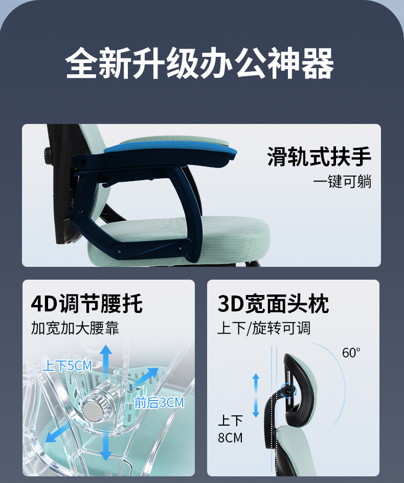 电脑椅家用办公座椅人体工学椅护腰学习椅舒适久坐电竞椅可躺椅子