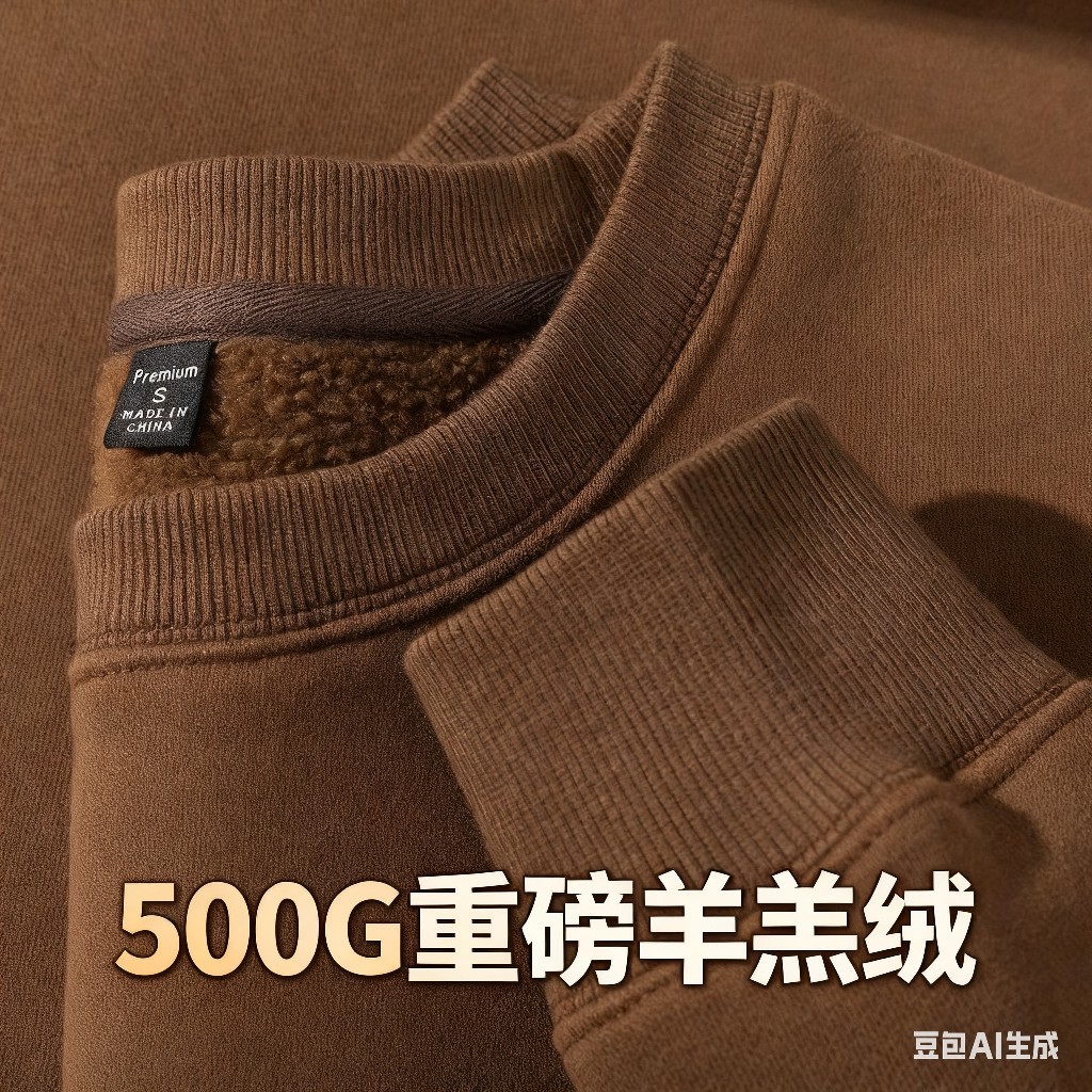 コーヒー色500g重ポンド冬にベルベットの丸首のセーターがシンプルな純色のアメリカのフリース男女の上着