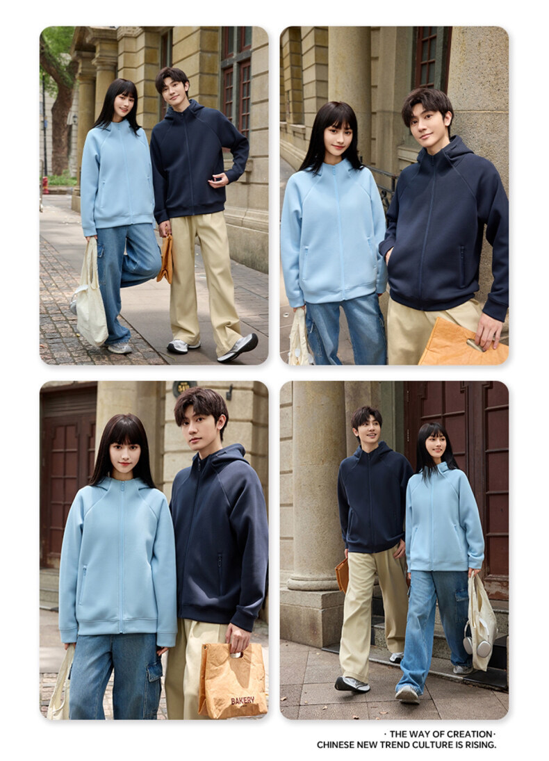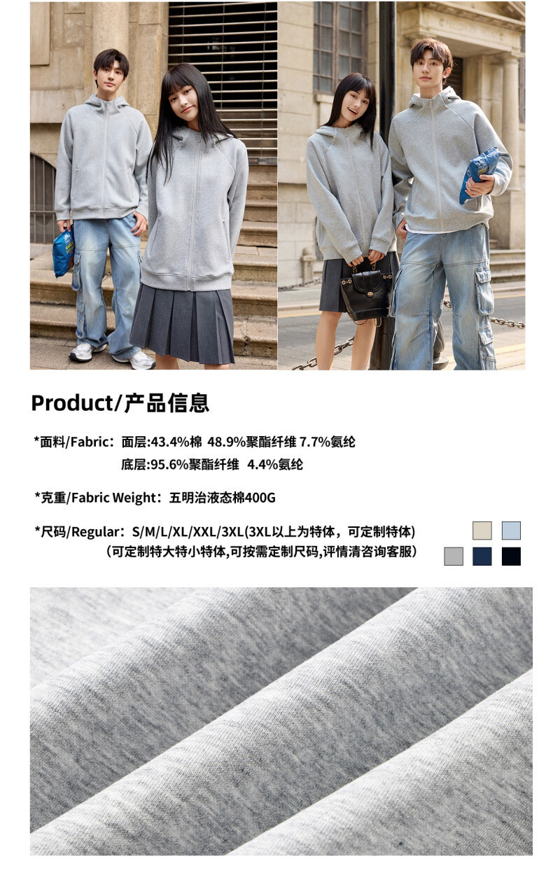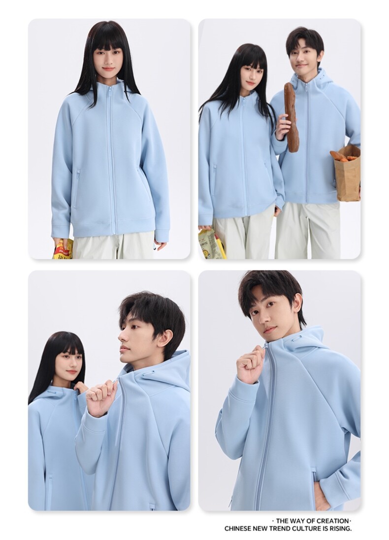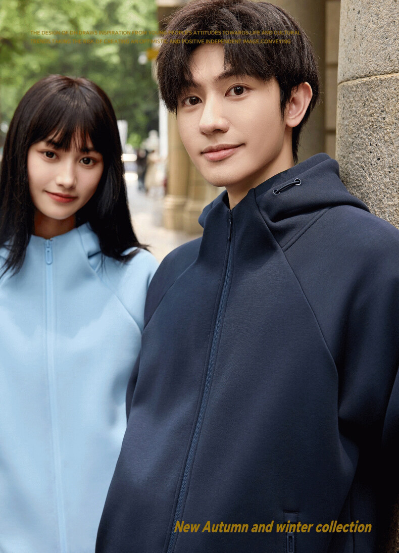 400G重磅液态棉插肩袖休闲高领连帽拉链卫衣男女潮秋冬宽松外套