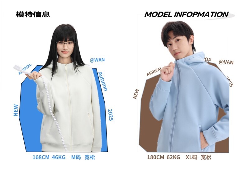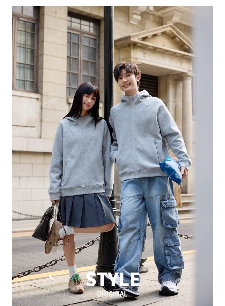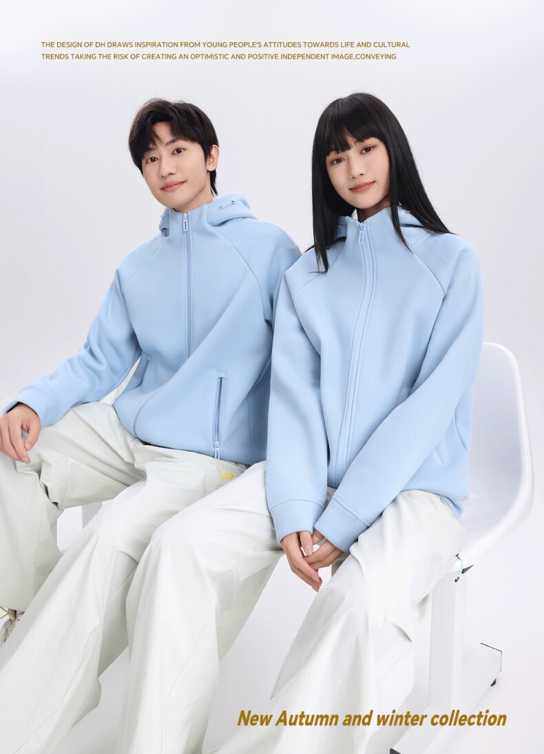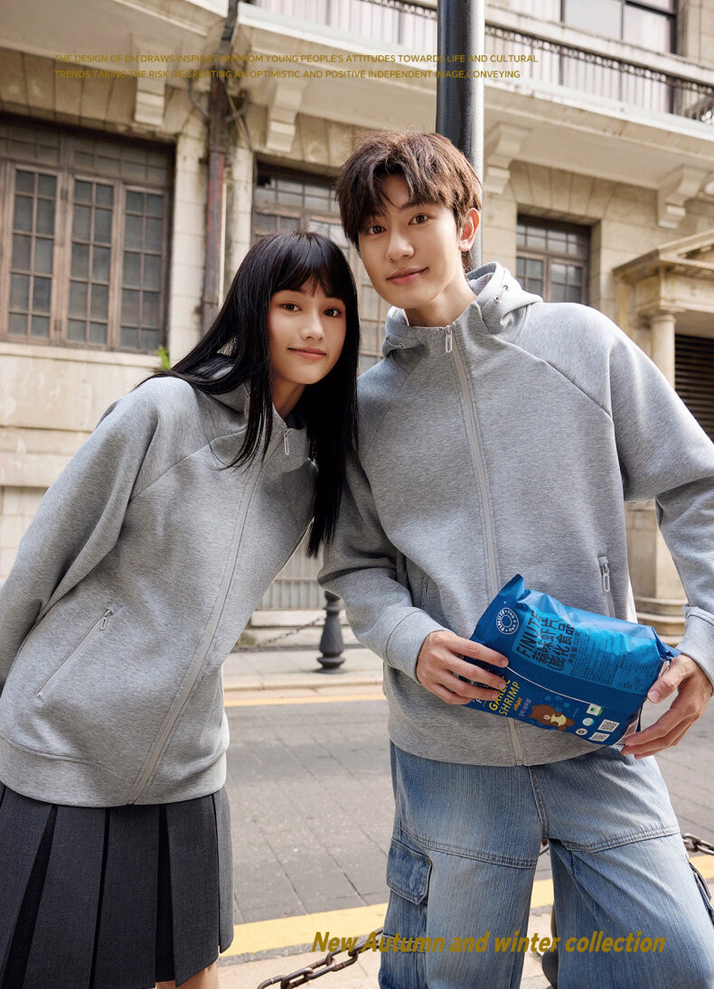 400G重磅液态棉插肩袖休闲高领连帽拉链卫衣男女潮秋冬宽松外套