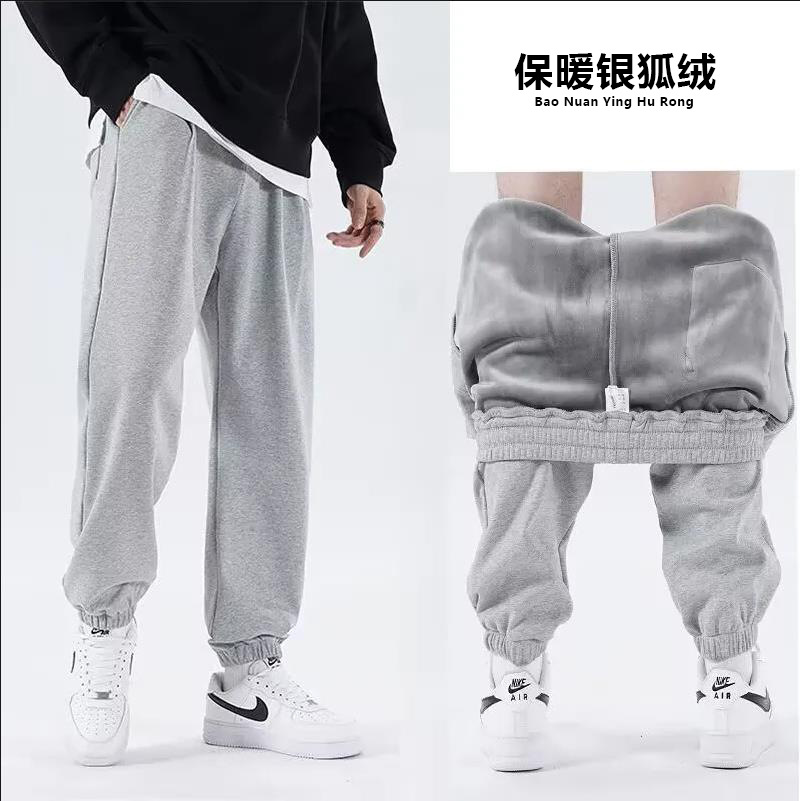 2025年シルバーフォックスベルベット秋冬カジュアルスポーツパンツメンズゆったり新作グレーカジュアルロングパンツ大きいサイズ裾絞り