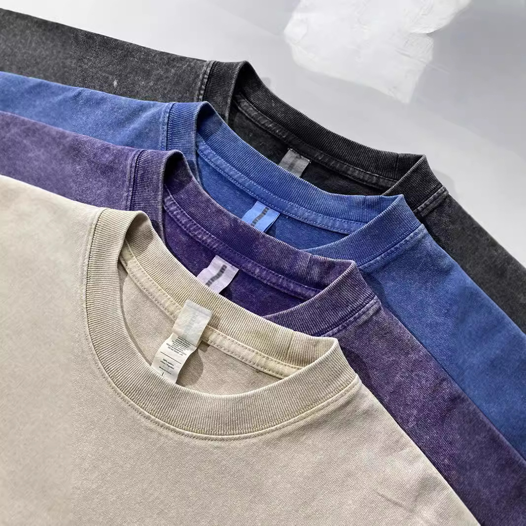 アメリカン潮牌水洗いレトロ半袖tシャツ男夏重ポンド純綿半袖insゆるい大サイズ純色tシャツ