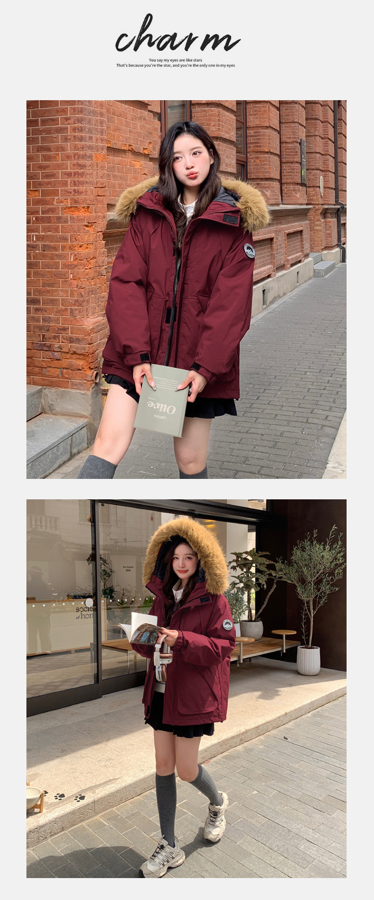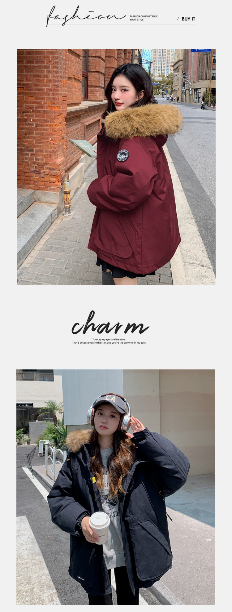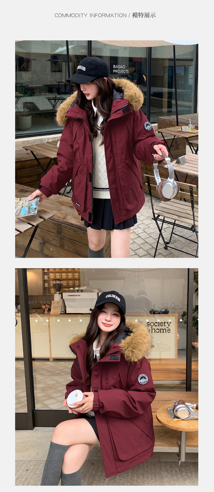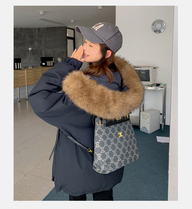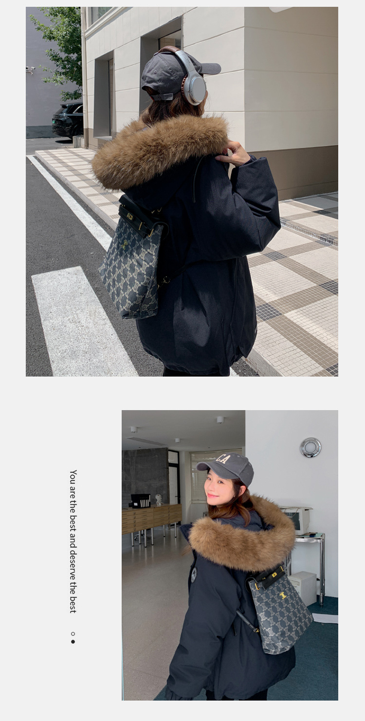 2025年冬季新款美式工装外套女学生加厚百搭派克服连帽毛领棉服潮