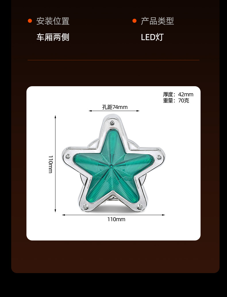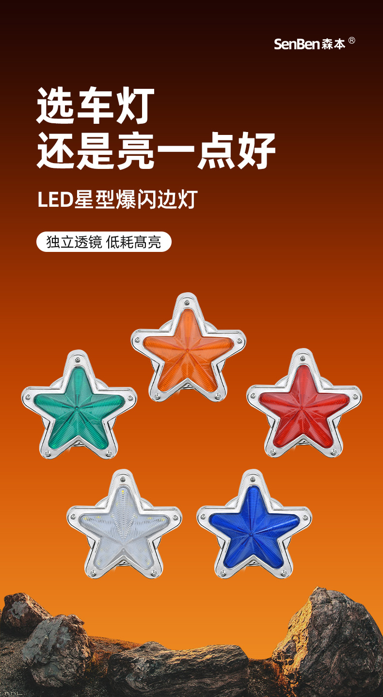 外贸跨境卡车爆闪边灯星星示宽灯车厢两侧信号灯24VLED电镀边灯