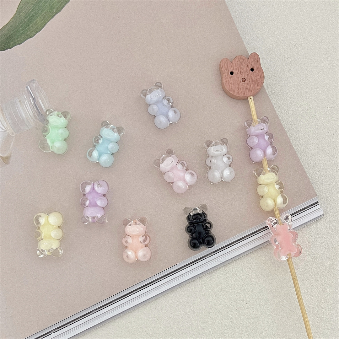 アクリル透明インナーカラー垂直穴クマ diy 手作りルースビーズブレスレット携帯電話チェーンビーズジュエリーアクセサリー卸売